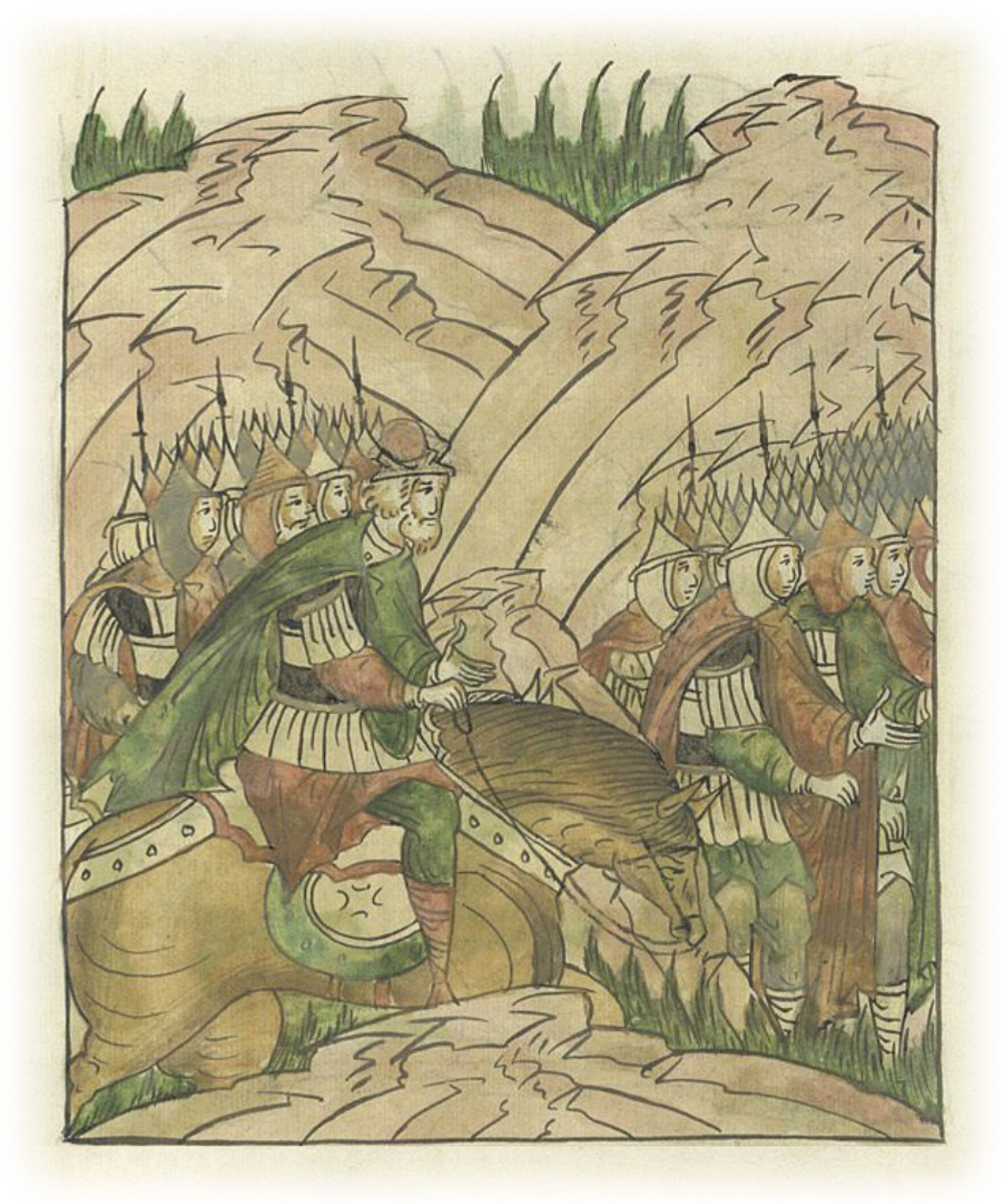 Воеводы царя Ивана Васильевича, разделившись, идут в погоню за царем Емгурчеем.