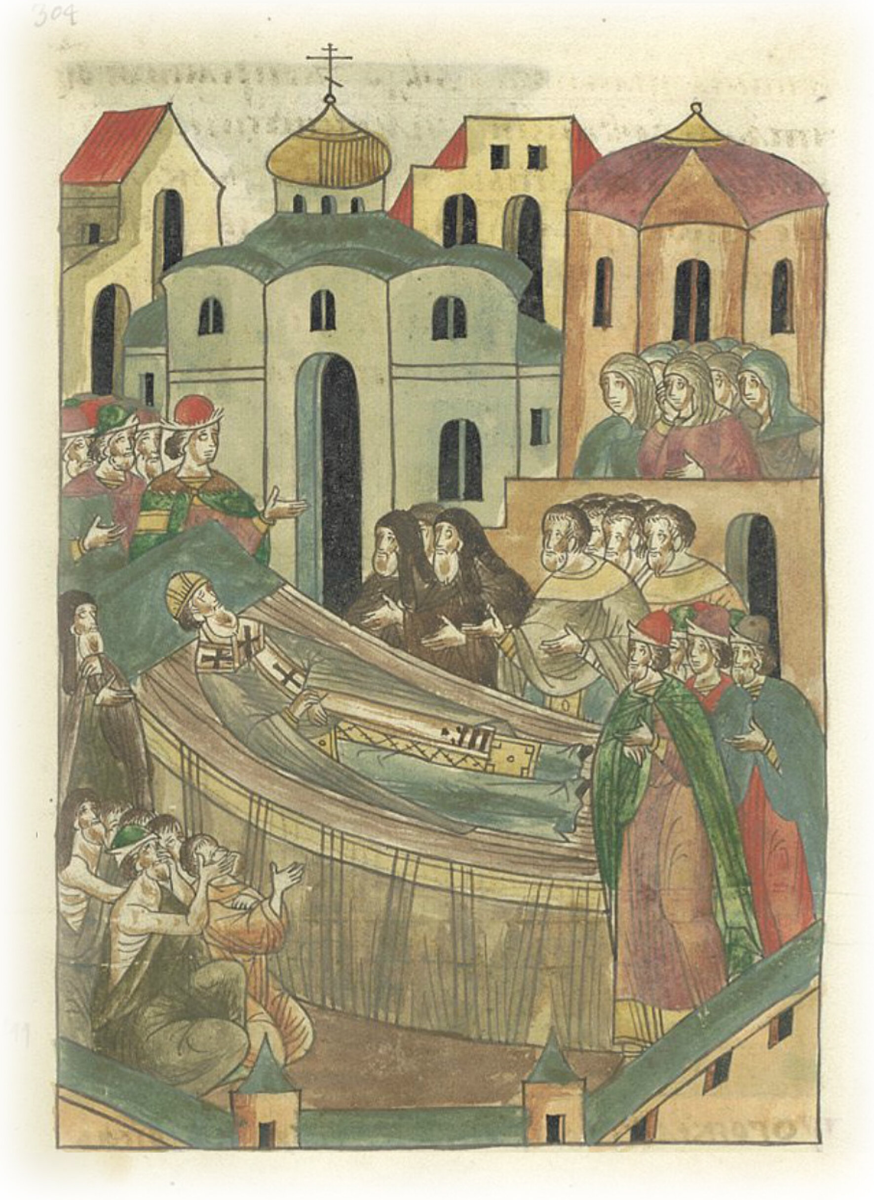 В том же году преставился блаженный Симеон, епископ Тверской. Был же сей добродетелен и учителен, и силен в книгах божественного писания, князей не стыдился, но слово Христово правил истинно, никого же не обвиняя и всем неправду творящим воспрещая, честный и умный был. Премного же чтил иерейский и монашеский чин, и нищих, и сирот, и вдовиц жаловал, и за обидимых заступался, и насилуемых избавлял, и был страшен всем, неправду творящим, ибо все его боялись и трепетали.