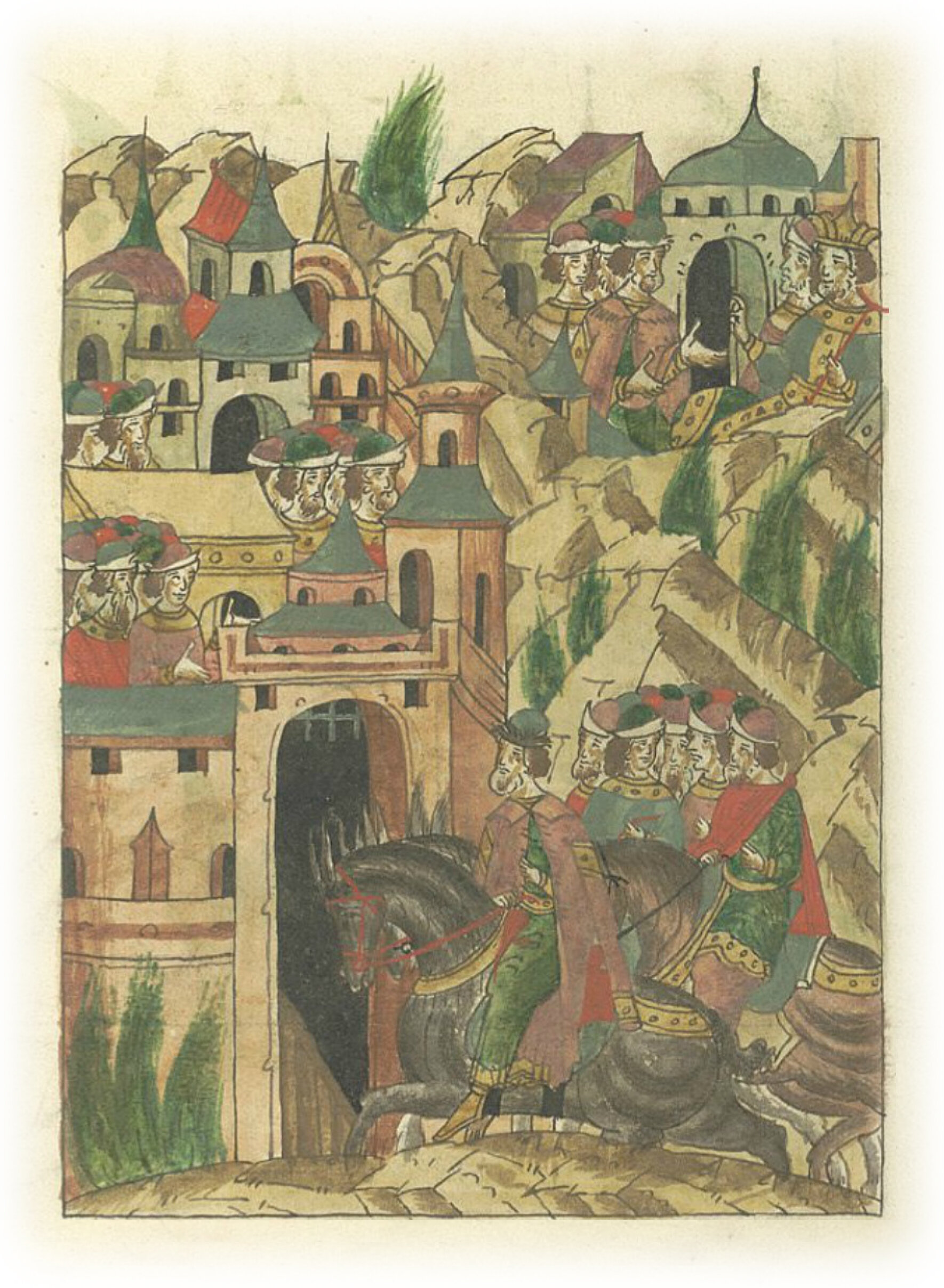 Ругодивские посадники Яким и Захар приезжают в Москву. Воеводы царя Ивана Васильевича Алексей Адашев и Иван Михайлов сообщают им, что государь пожалует их, если сдадут его воеводам помимо Ругодива Вышгород.