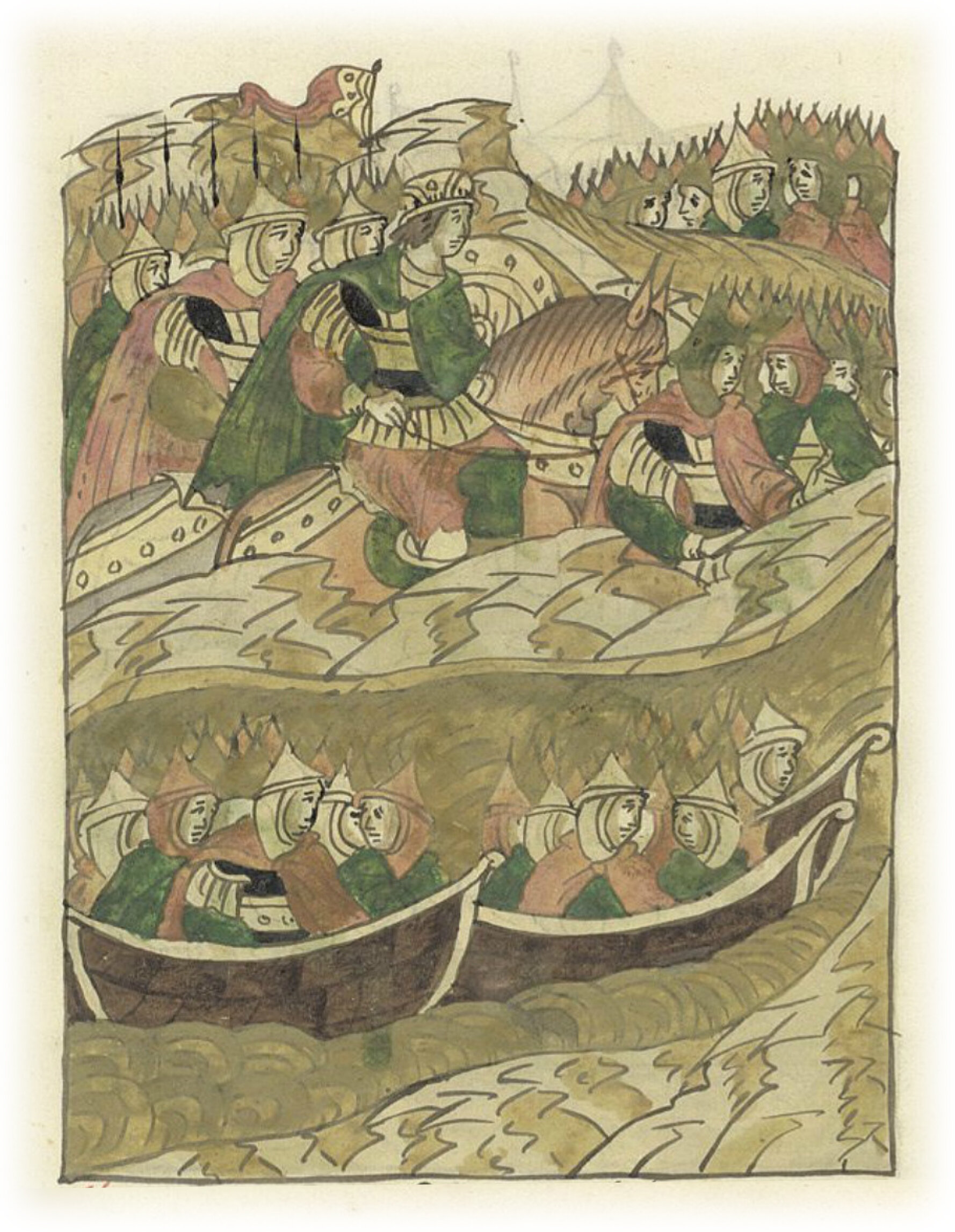 то снарядили против них людей – пеших и в судах; а сами с князем их Романом Игоревичем пошли берегом на конях.