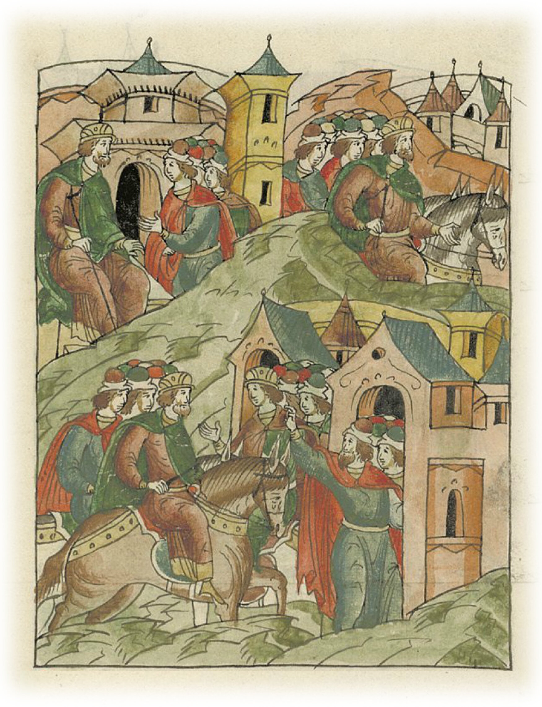 и, пробыв там немного, бежал из Ростова к Новгороду, но не приняли его новгородцы, говоря: «Ходил ты на завоевание другого княжения, а нас оставил, только сына своего оставил у нас»; потом и сына его Святослава выслали к нему, сказав: «Иди, куда хочешь, а у нас больше не живи».