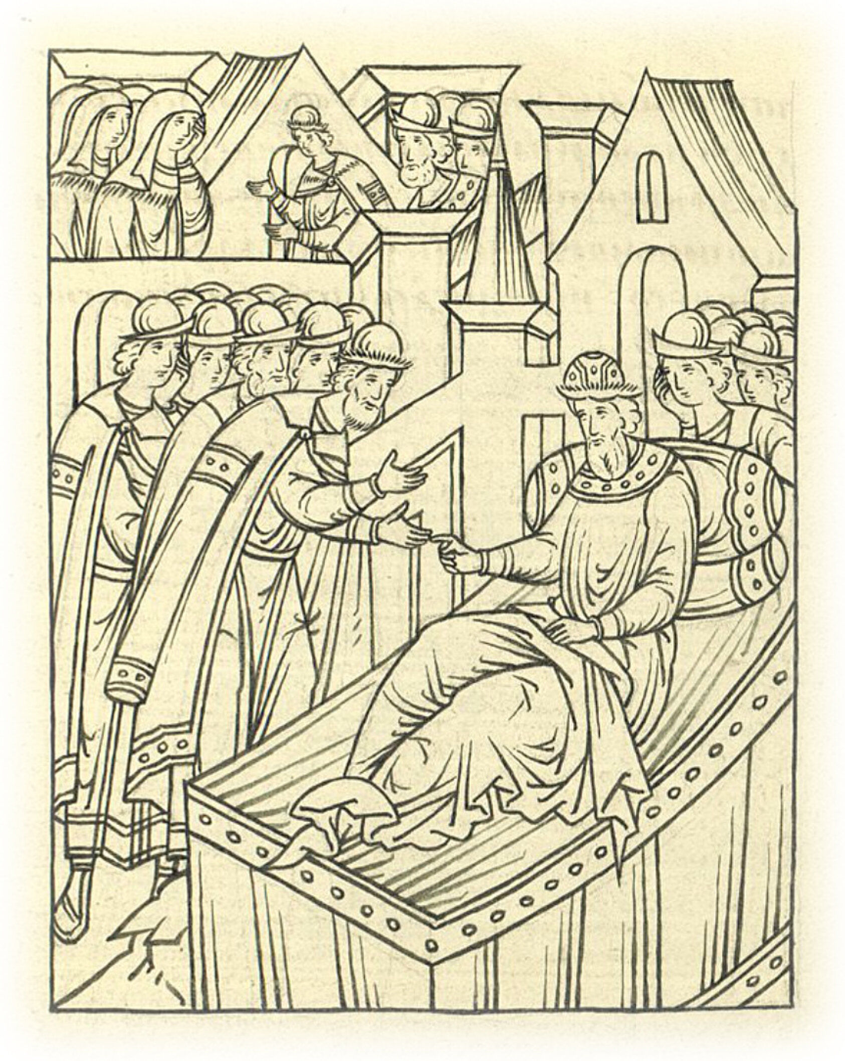 Ругодивские посадники Яким и Захар приезжают в Москву. Воеводы царя Ивана Васильевича Алексей Адашев и Иван Михайлов сообщают им, что государь пожалует их, если сдадут его воеводам помимо Ругодива Вышгород.