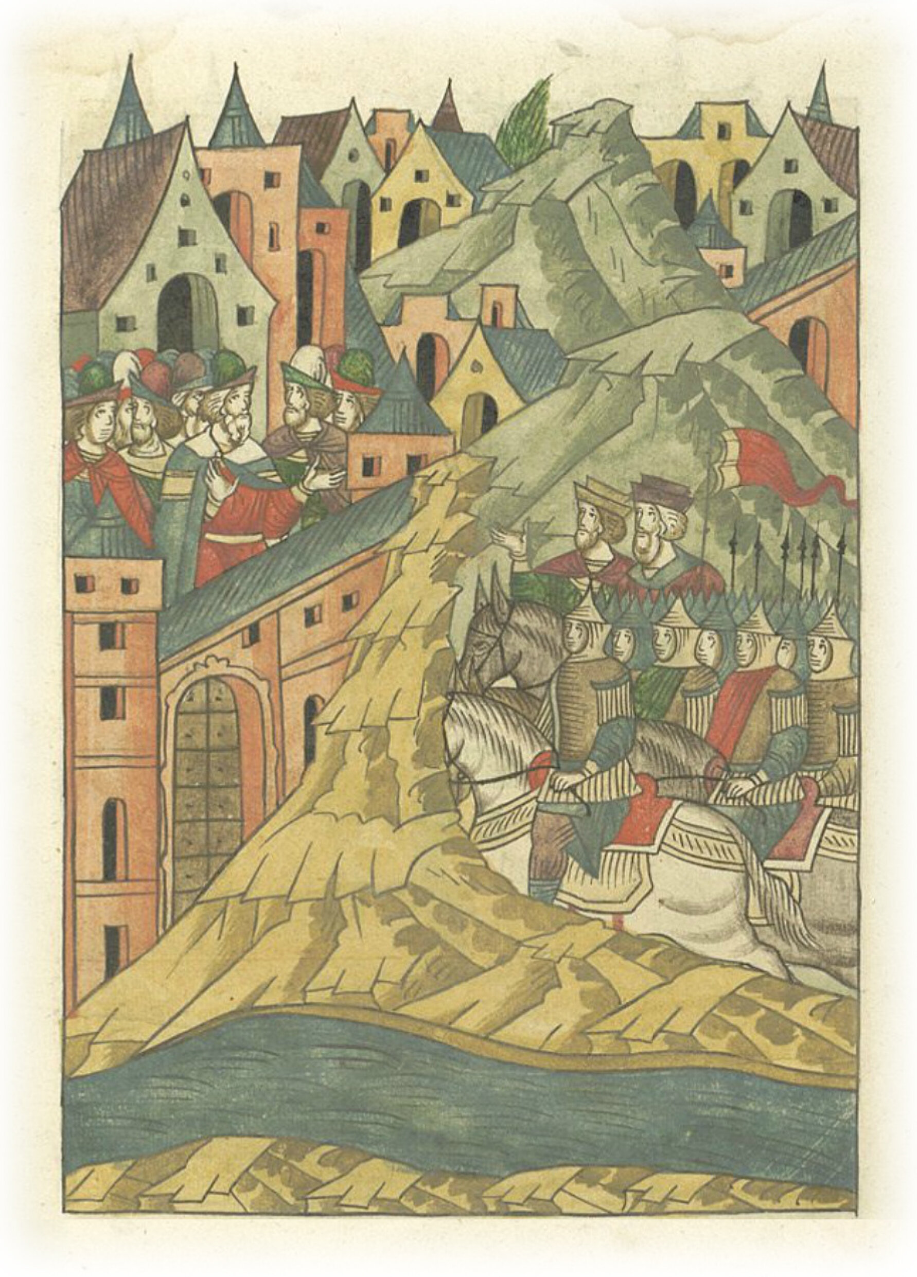 Языки говорят воеводам царя Ивана Васильевича, что магистр окопался большим рвом вокруг города Рындола, бьет из пушек и пищалей и приступает к Рындолу.