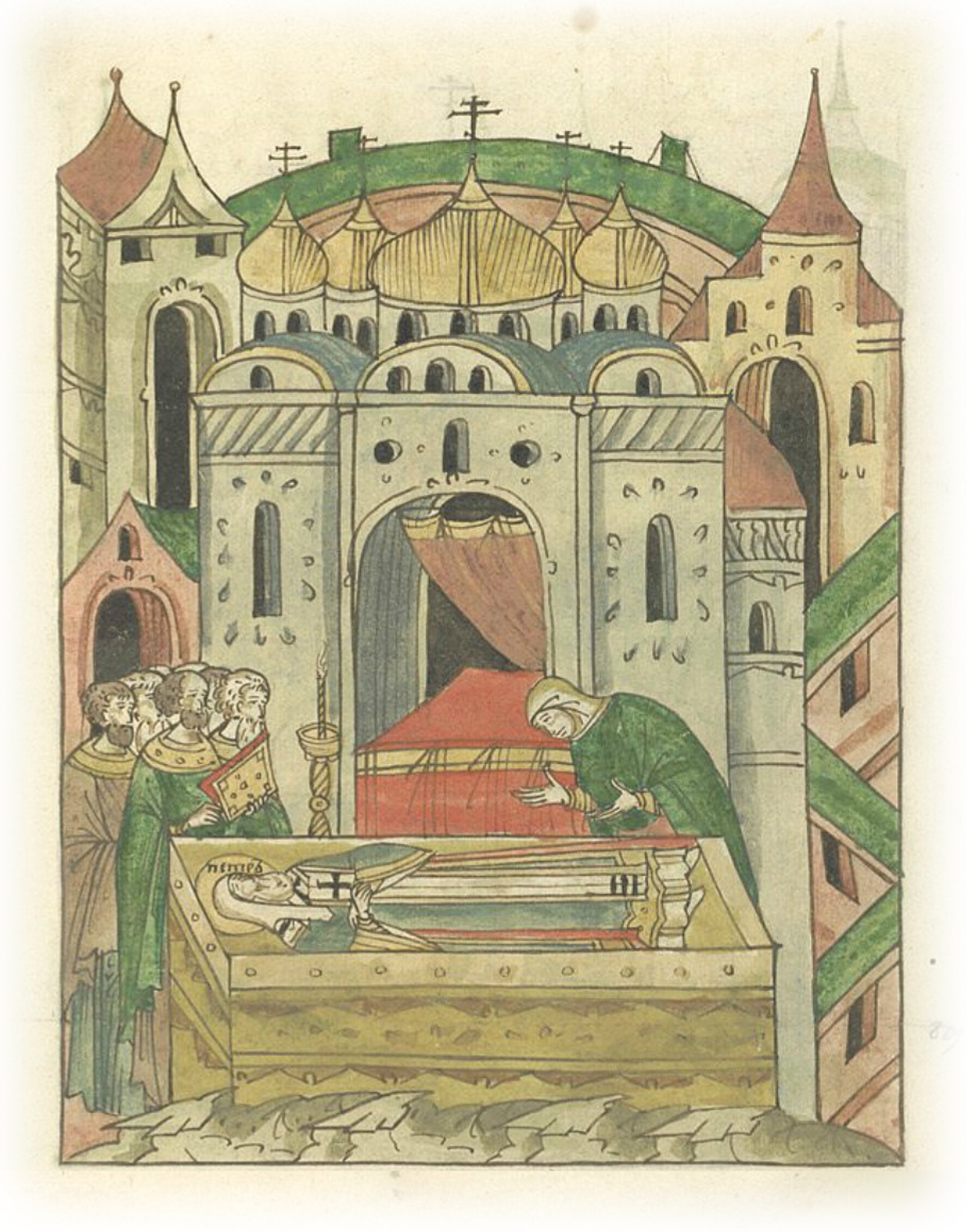 В том же году была исцелена некая женщина у гроба Петра чудотворца в соборной митрополичьей церкви пресвятой Богородицы.