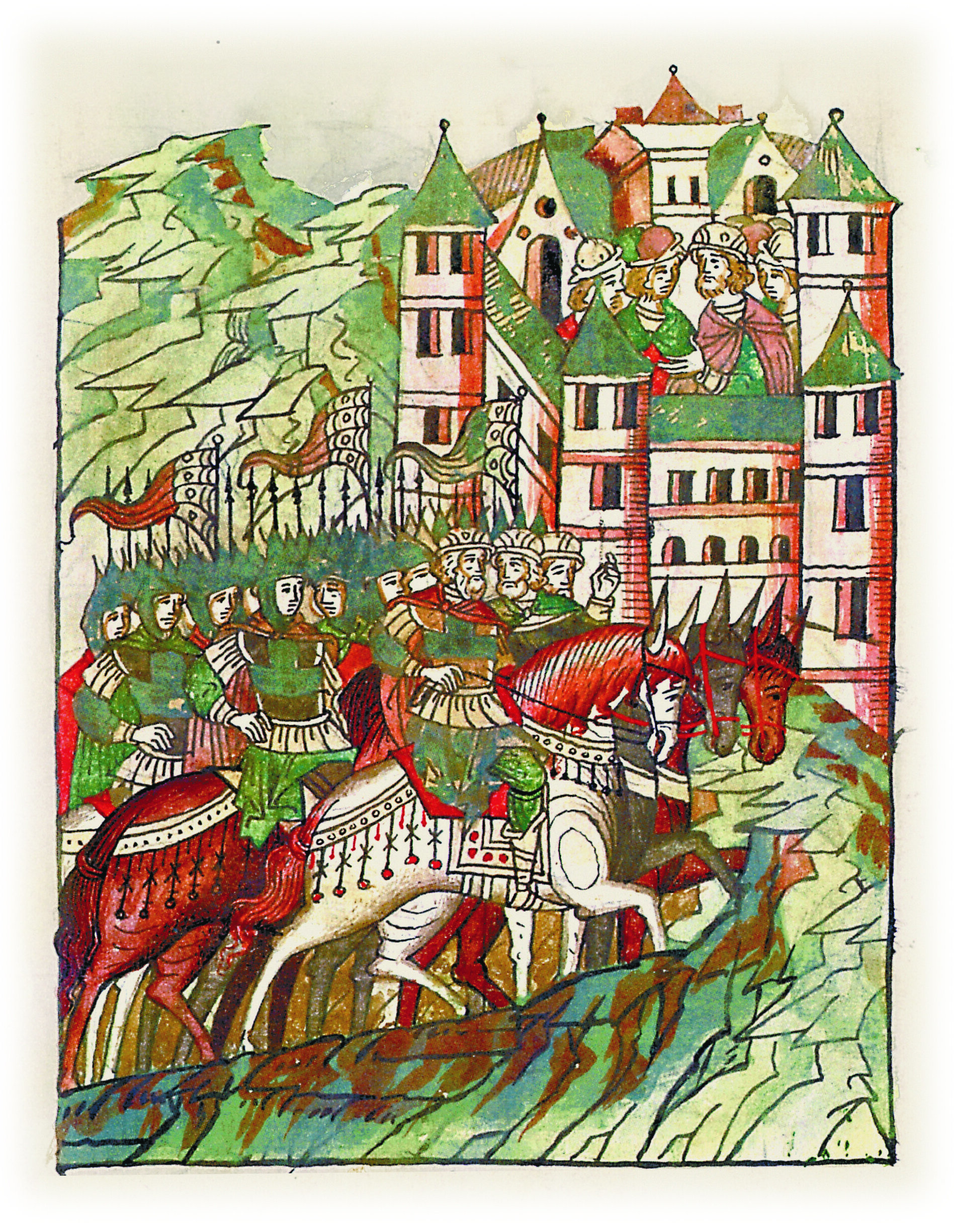 Языки говорят воеводам царя Ивана Васильевича, что магистр окопался большим рвом вокруг города Рындола, бьет из пушек и пищалей и приступает к Рындолу.