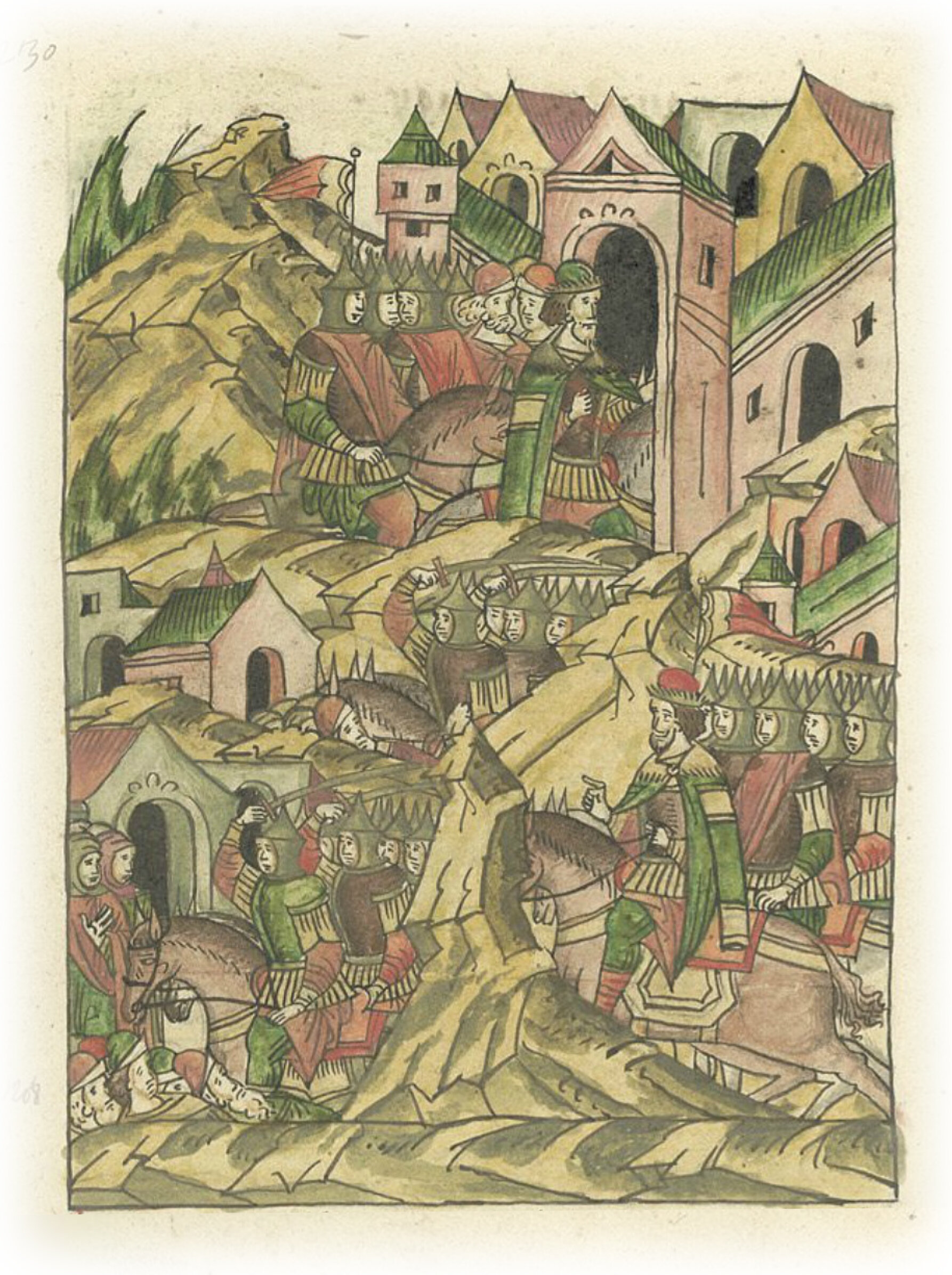 Языки говорят воеводам царя Ивана Васильевича, что магистр окопался большим рвом вокруг города Рындола, бьет из пушек и пищалей и приступает к Рындолу.