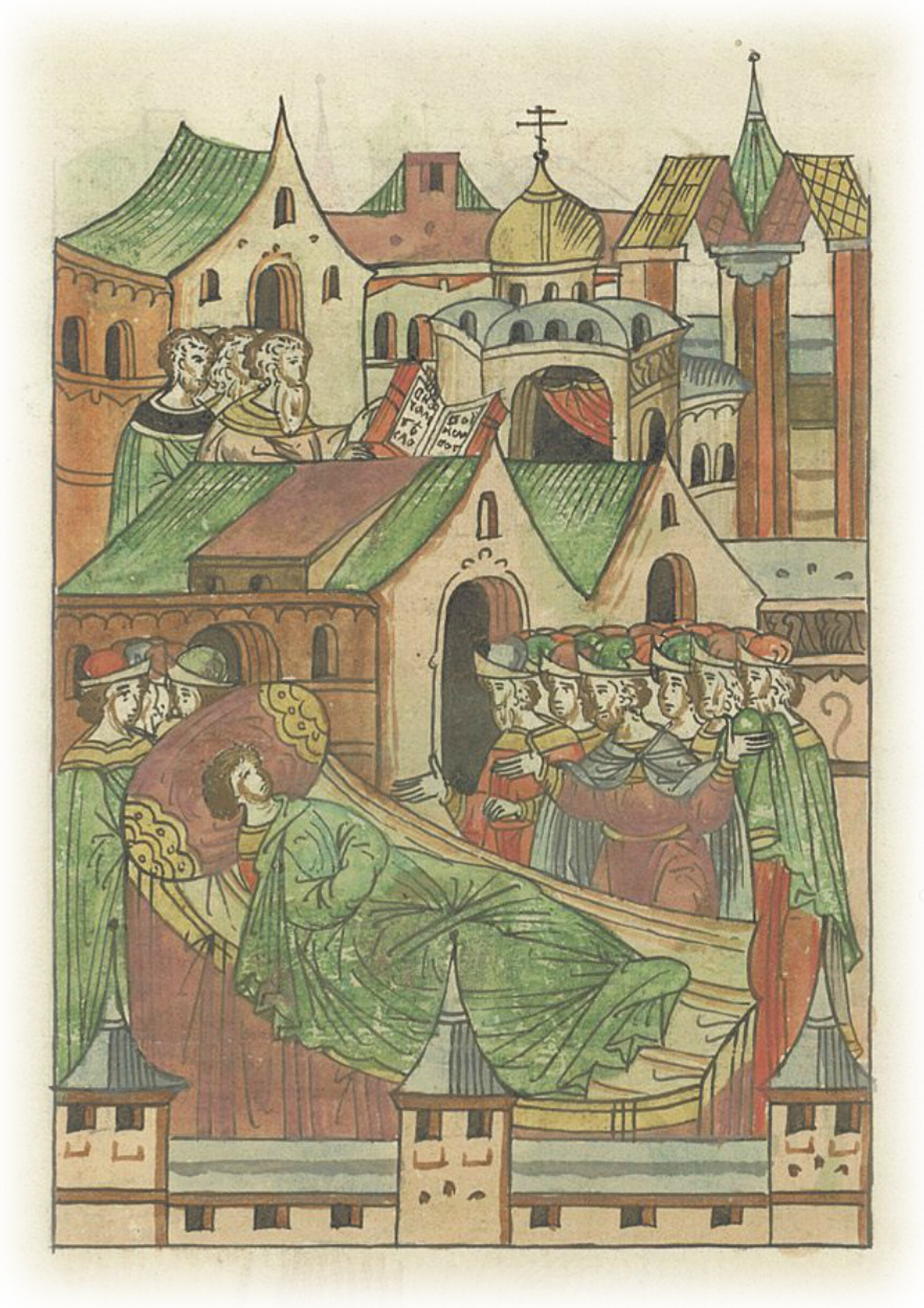 В среду же перестал говорить, но людей узнавал, в четверг во время обедни, когда начали читать святое Евангелие, князь окончательно испустил дух месяца сентября в 22 день.