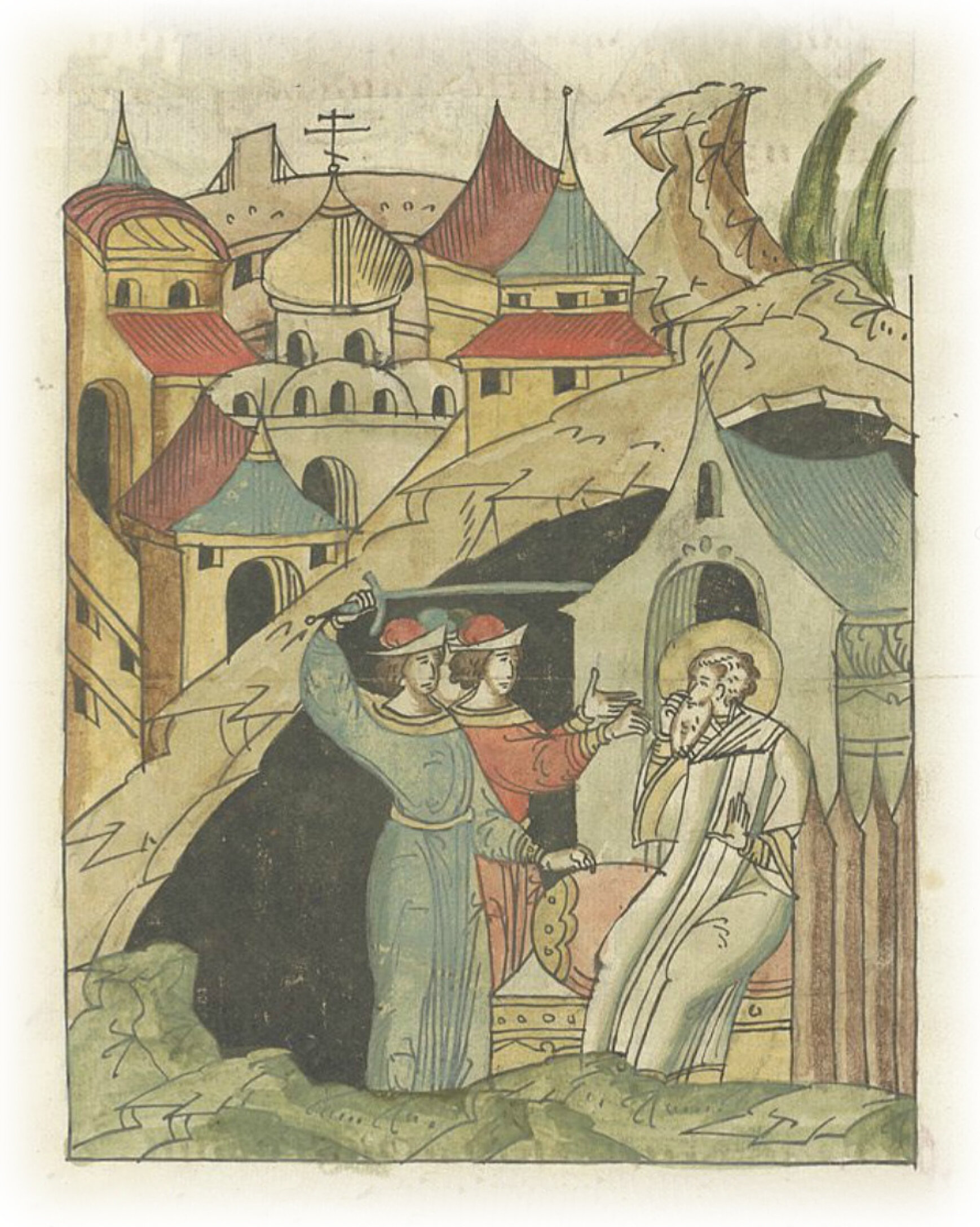 Краткое сказание о латинянах. Патриарх Константинопольский Мефодий страдает от пыток в заточении.