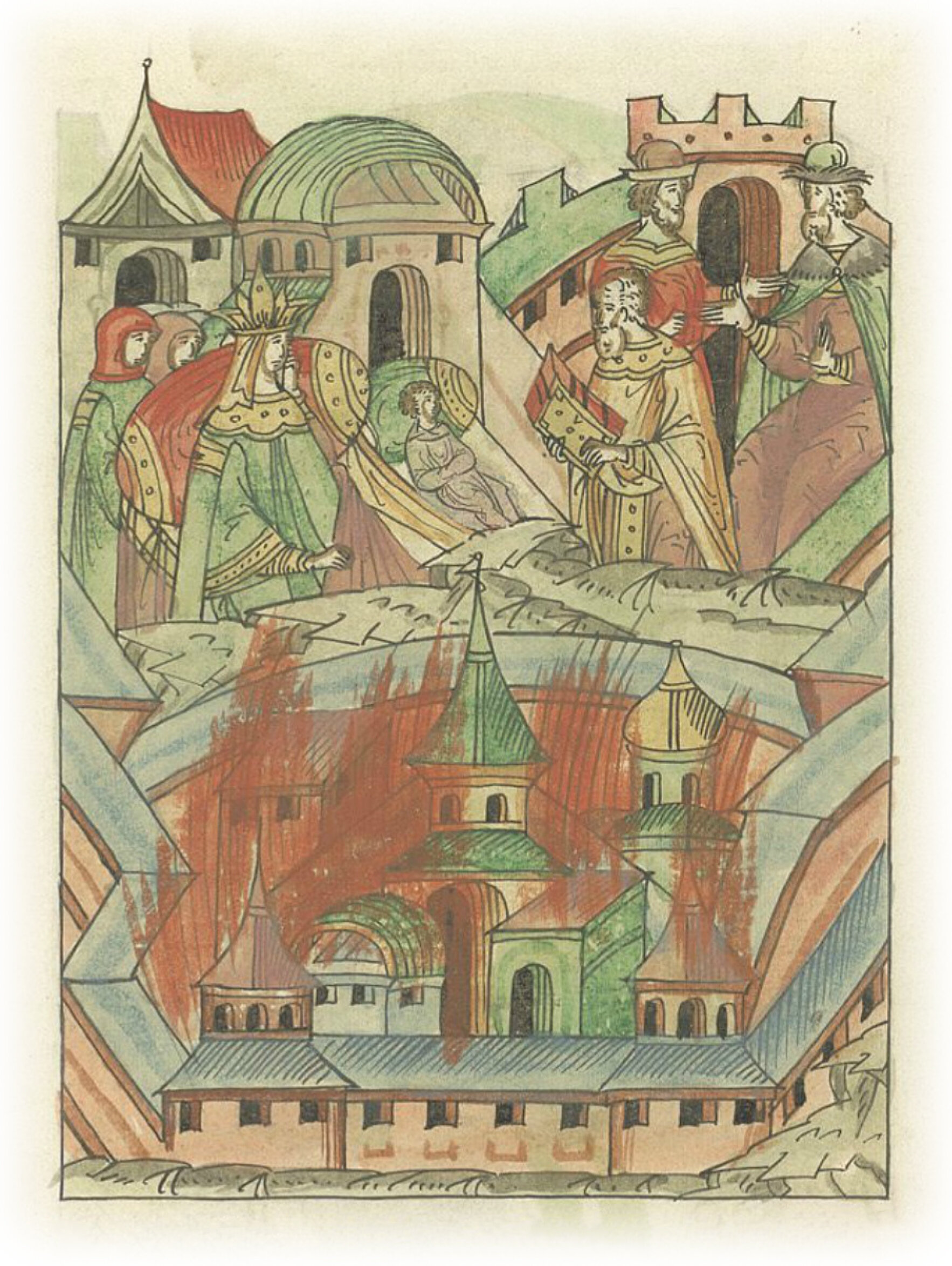 Рождение у великого князя Василия Васильевича сына Андрея. Пожар в Москве, в котором выгорает весь Кремль.