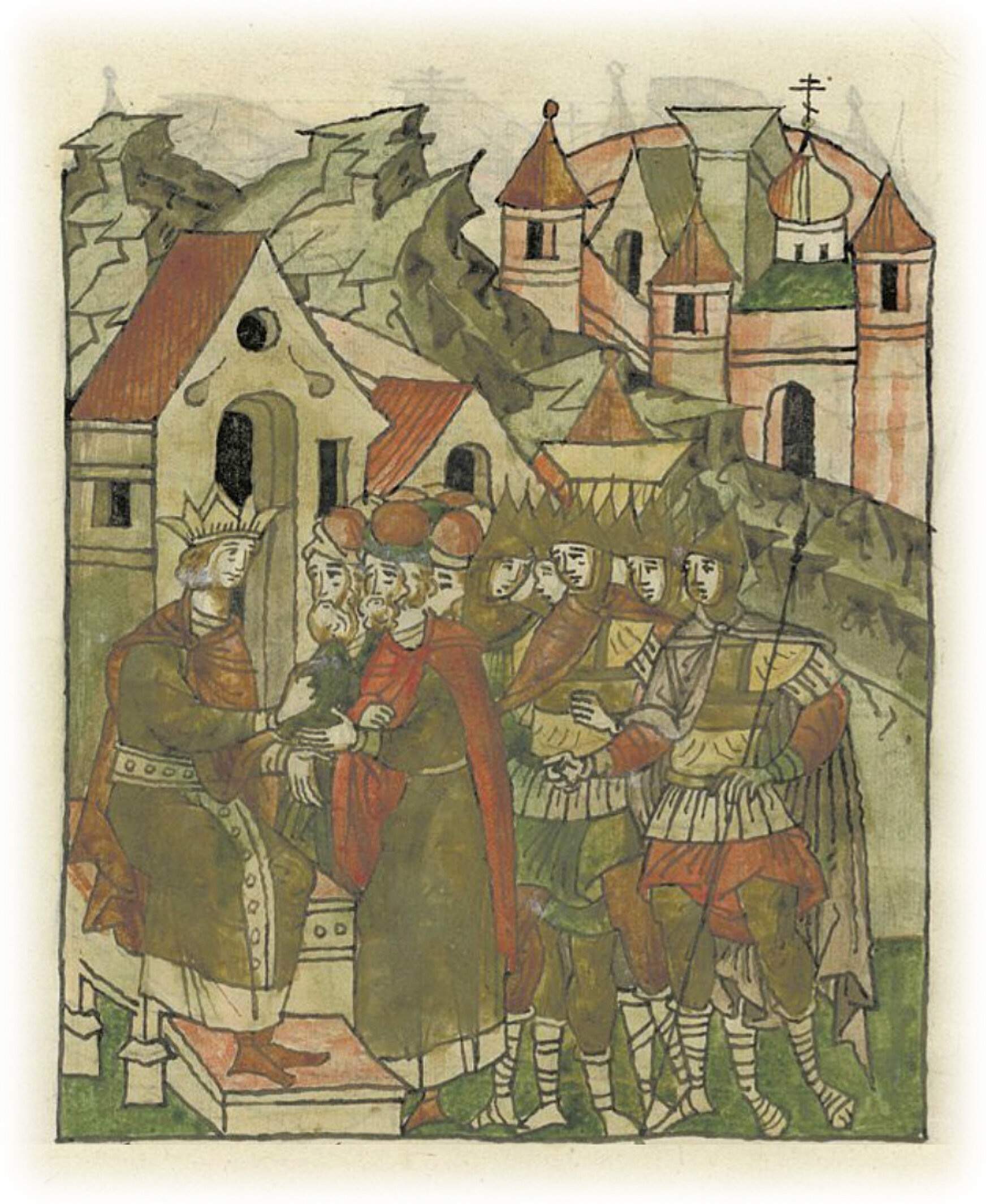 Ругодивские посадники Яким и Захар приезжают в Москву. Воеводы царя Ивана Васильевича Алексей Адашев и Иван Михайлов сообщают им, что государь пожалует их, если сдадут его воеводам помимо Ругодива Вышгород.