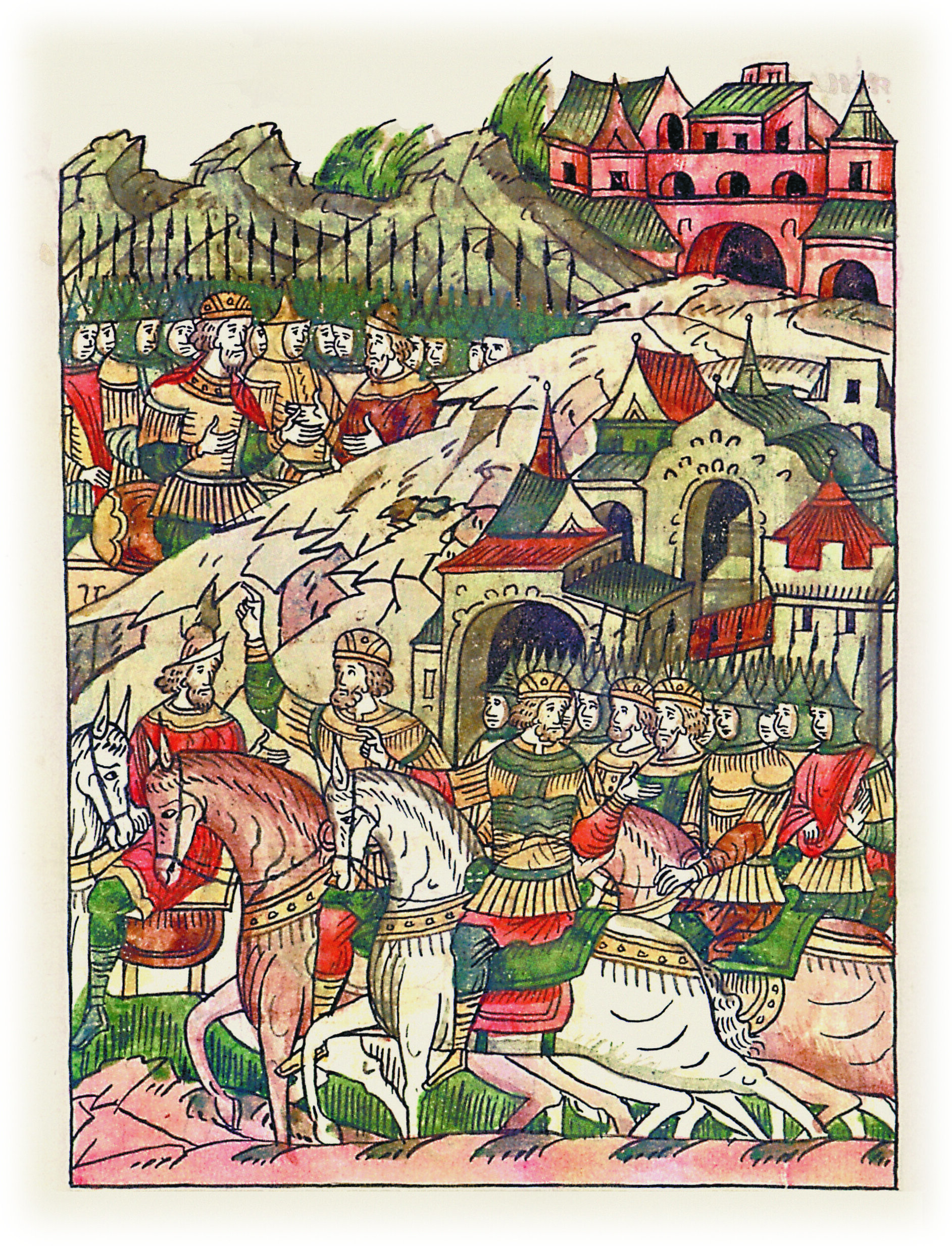 Языки говорят воеводам царя Ивана Васильевича, что магистр окопался большим рвом вокруг города Рындола, бьет из пушек и пищалей и приступает к Рындолу.