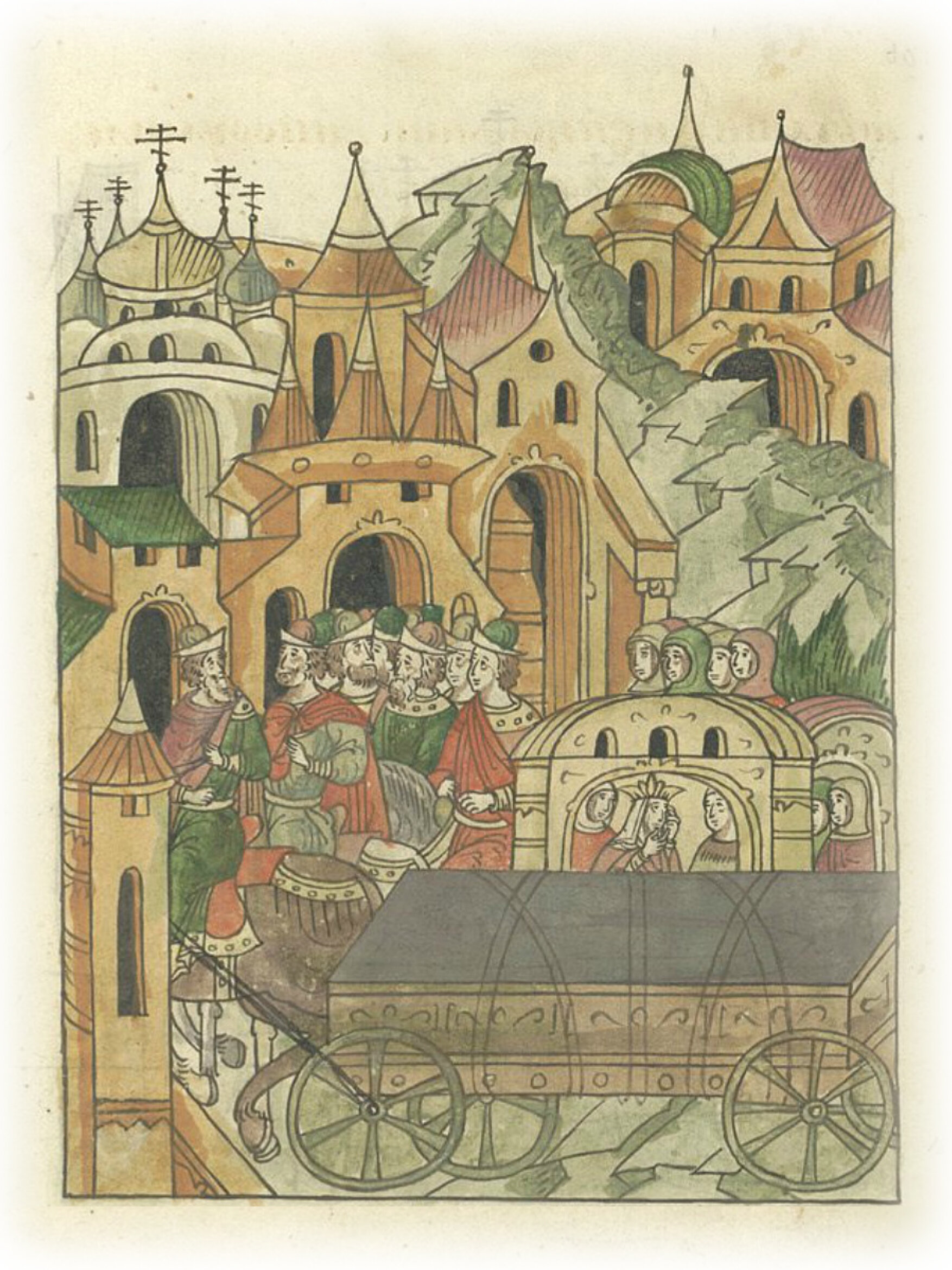 Княгиня Мария с сыном Дмитрием привозят тело князя Бориса Васильковича Ростовского из Орды в Ростов.