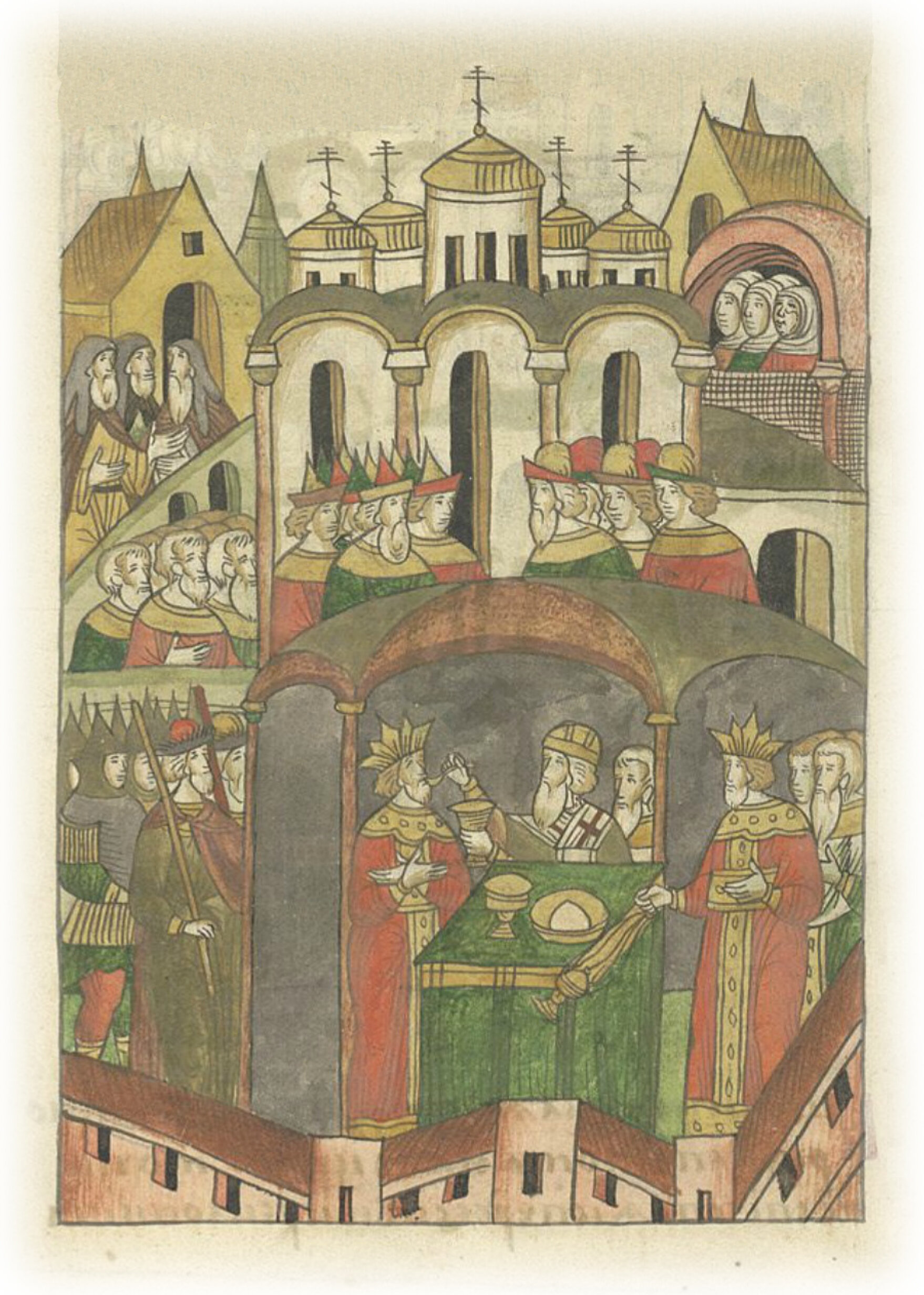 По принесении же в святой алтарь священных божественных даров царь кадил около священного престола и пребывал царь в алтаре до святого причащения. И когда пришло время святому причащению,
