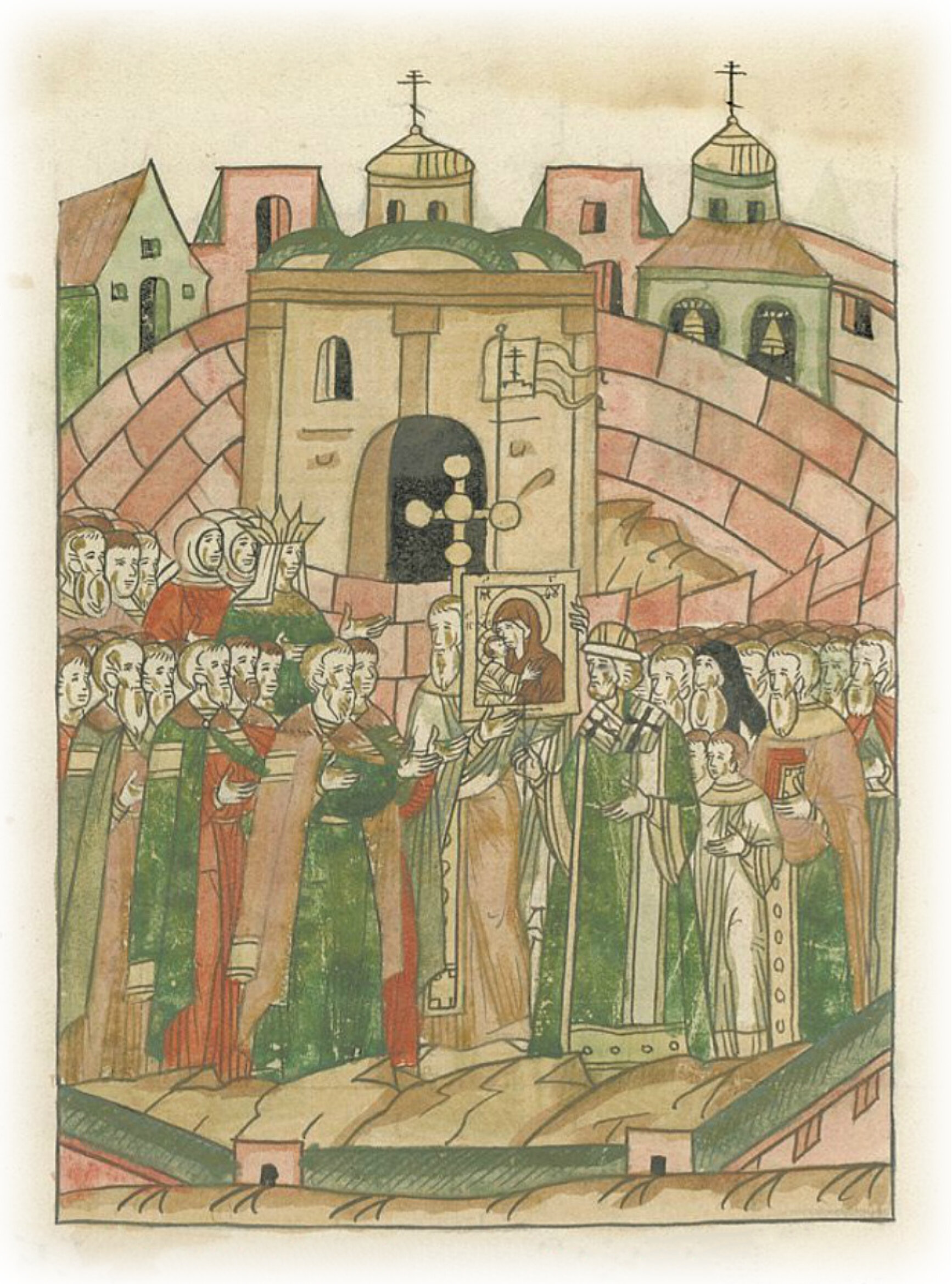 О обретении мощей. Пришел же туда благоверный и христолюбивый великий князь Иван Васильевич всея Руси, и сын его князь великий Иван, и мать его, и братья его, бояре и вельможи, и все народное множество славного города Москвы. И так совершили молебен,