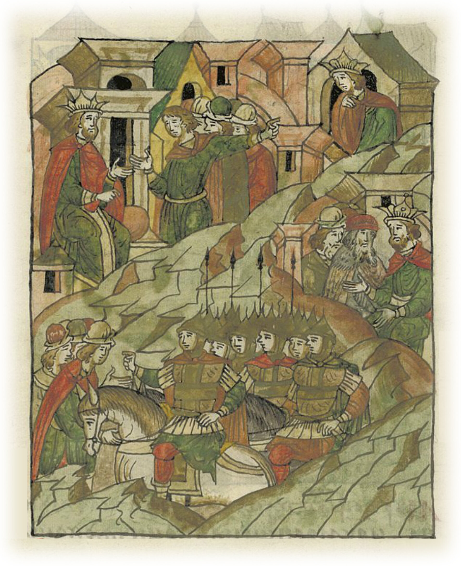 и просили у Мурцуфла отпустить им Исааковича: «Вернемся мы к Немецкому царю и к папе Римскому, кем были присланы, а тебе останется царство его».