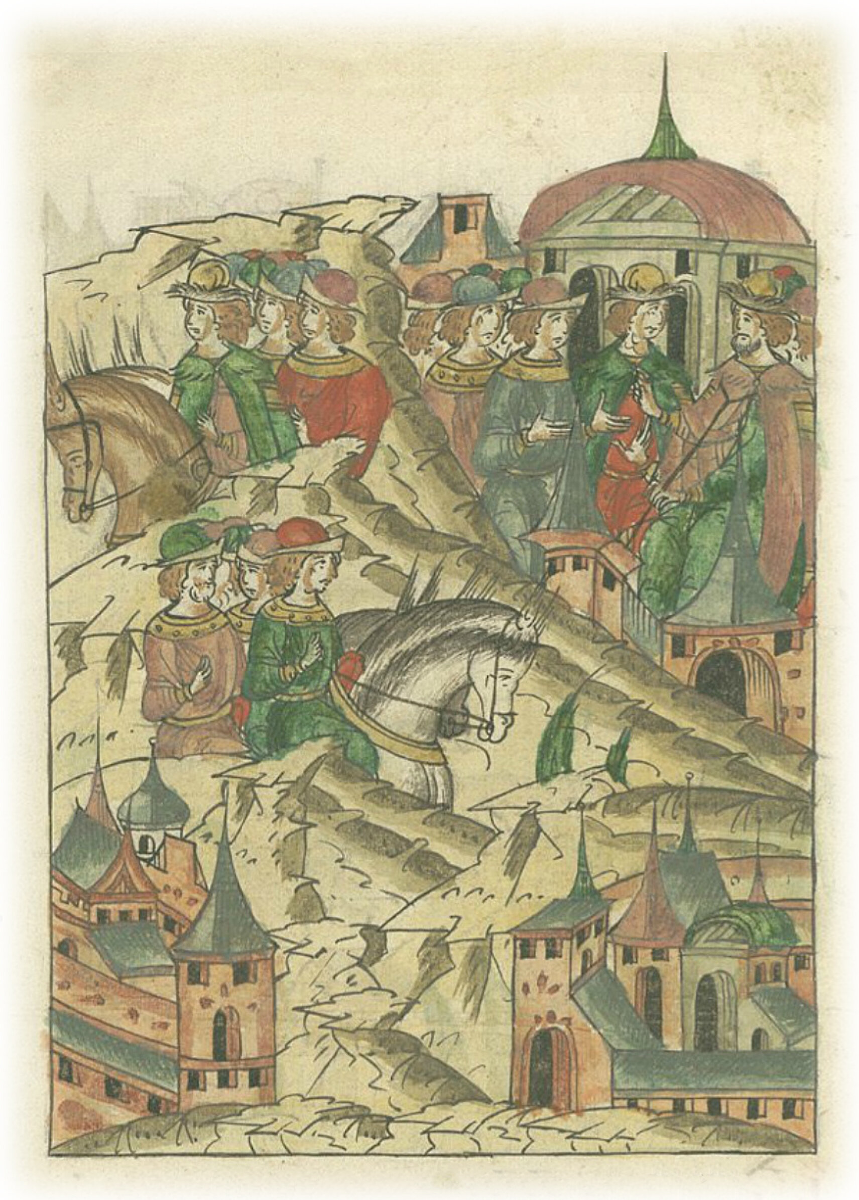Ругодивские посадники Яким и Захар приезжают в Москву. Воеводы царя Ивана Васильевича Алексей Адашев и Иван Михайлов сообщают им, что государь пожалует их, если сдадут его воеводам помимо Ругодива Вышгород.
