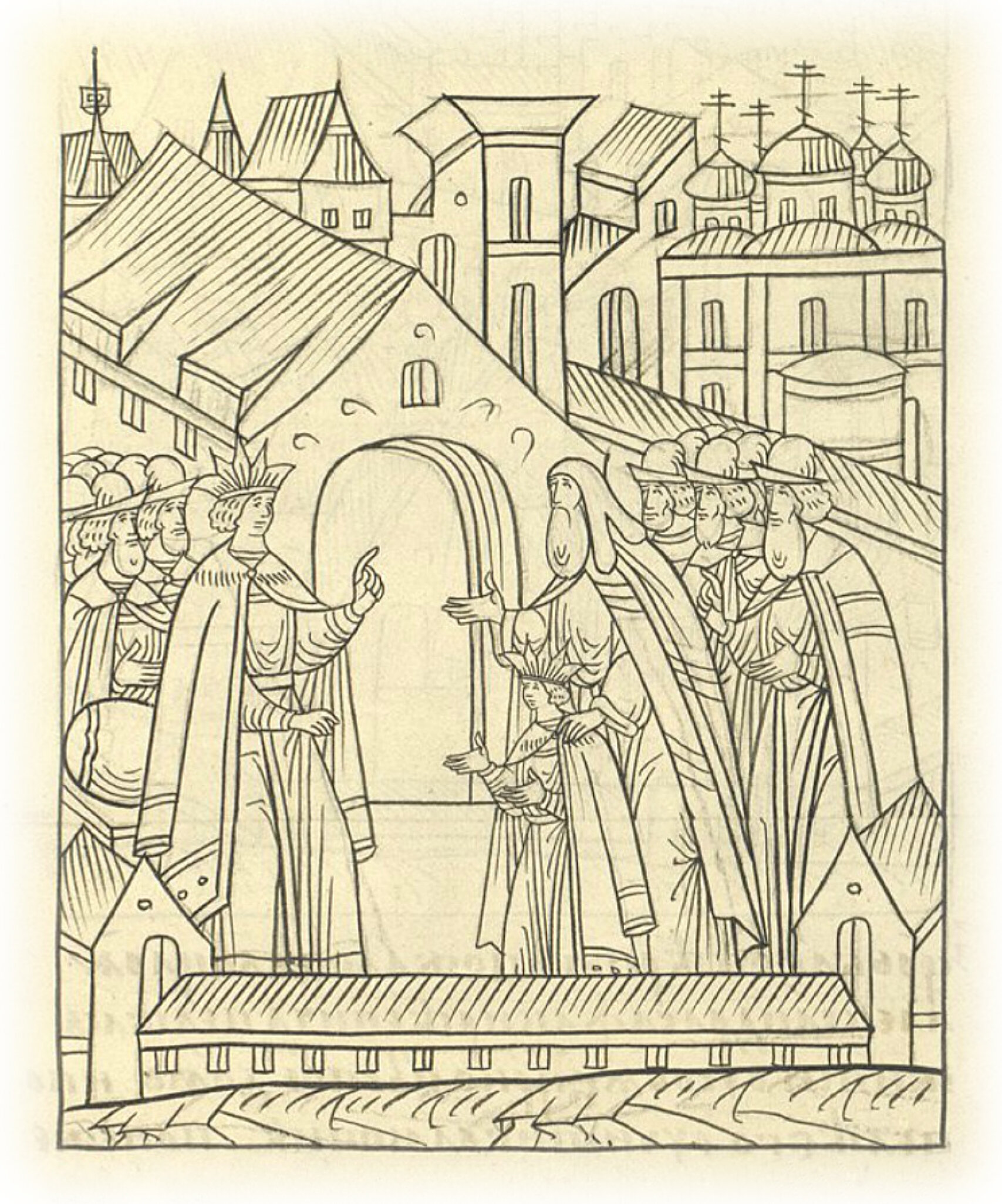 Ругодивские посадники Яким и Захар приезжают в Москву. Воеводы царя Ивана Васильевича Алексей Адашев и Иван Михайлов сообщают им, что государь пожалует их, если сдадут его воеводам помимо Ругодива Вышгород.