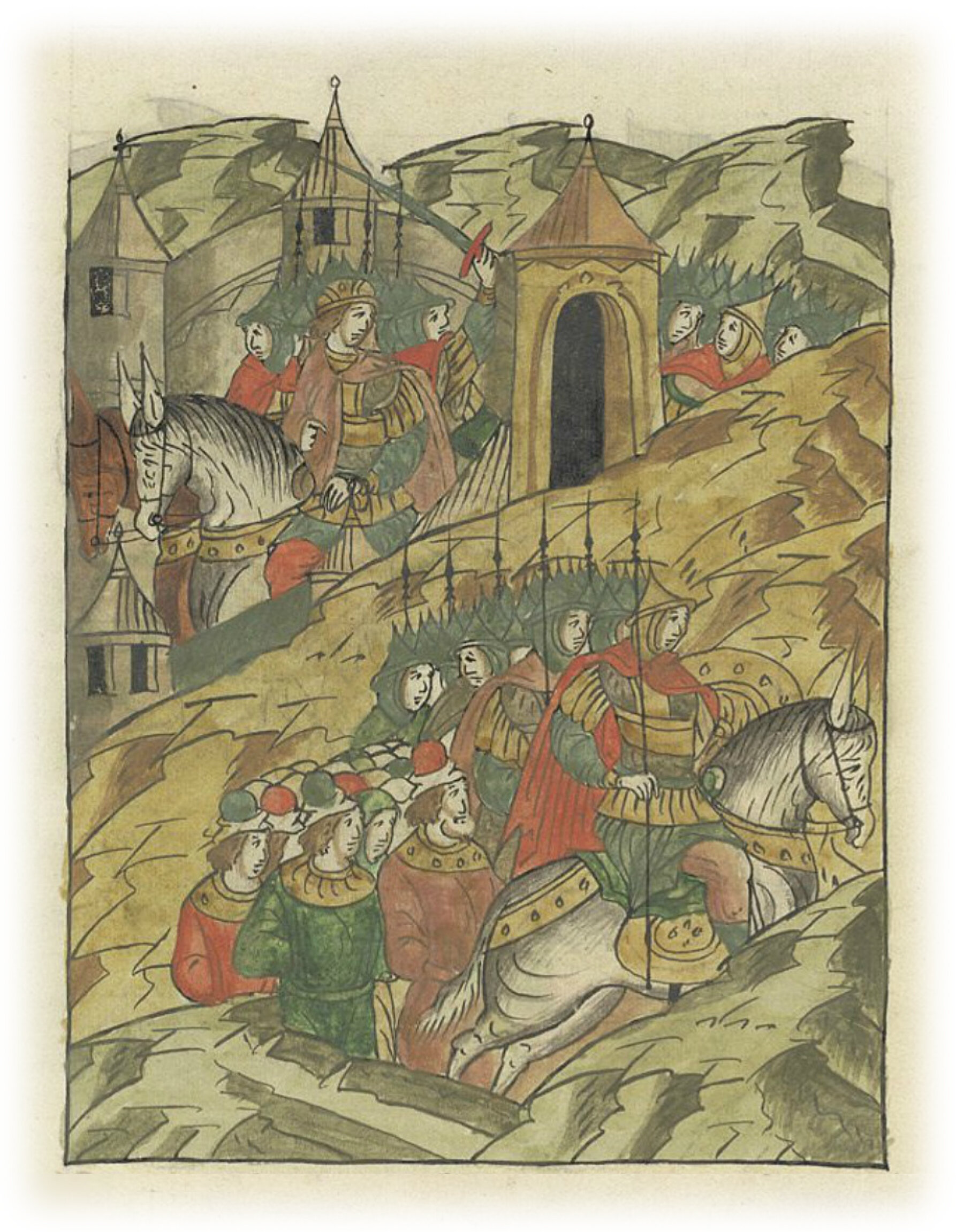 и как только отбили князя, раненого тремя копьями, вбежали вместе с ним в город, затворив ворота. Половцы же с множеством пленных возвратились в свои пределы.