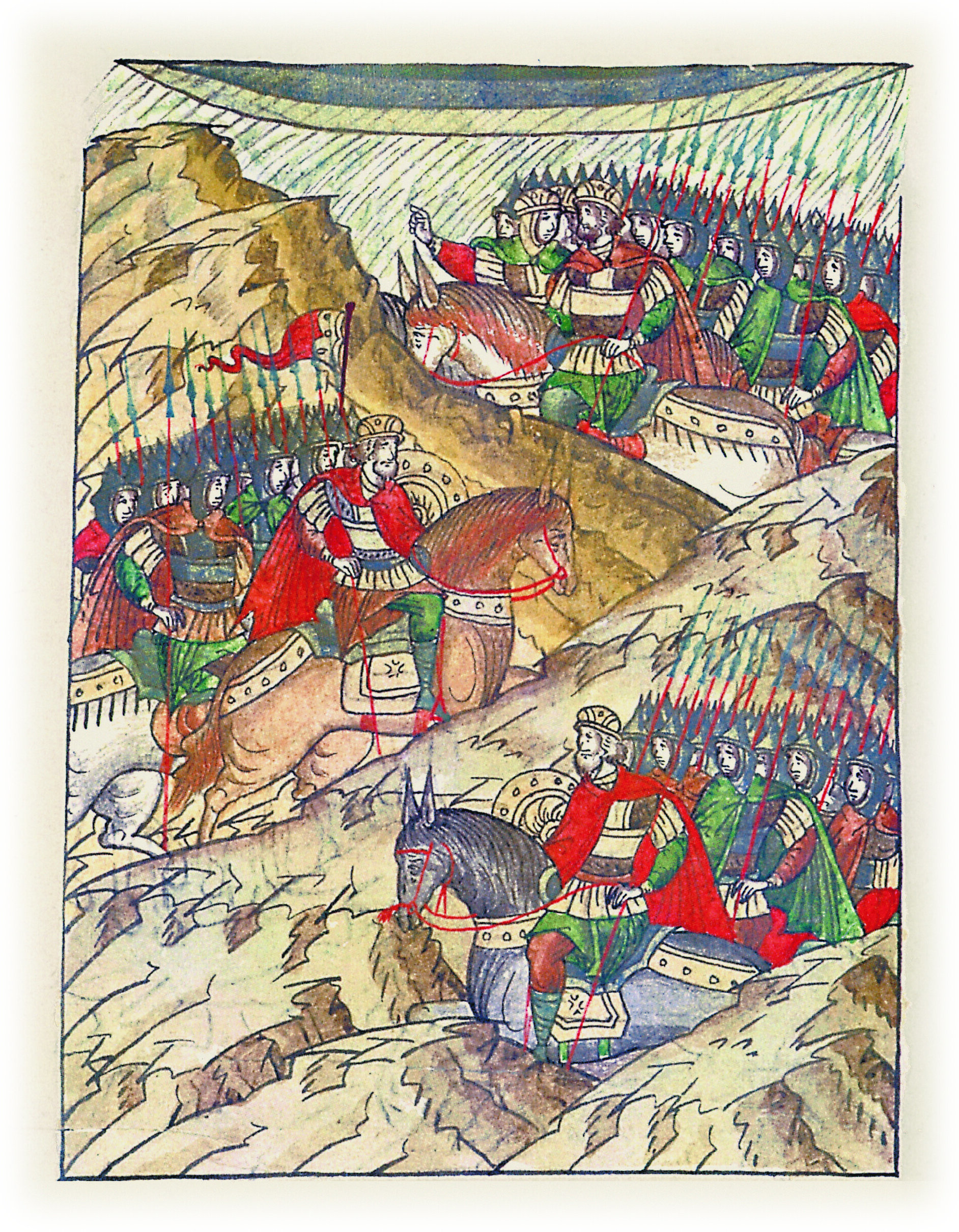 Воеводы царя Ивана Васильевича, разделившись, идут в погоню за царем Емгурчеем.