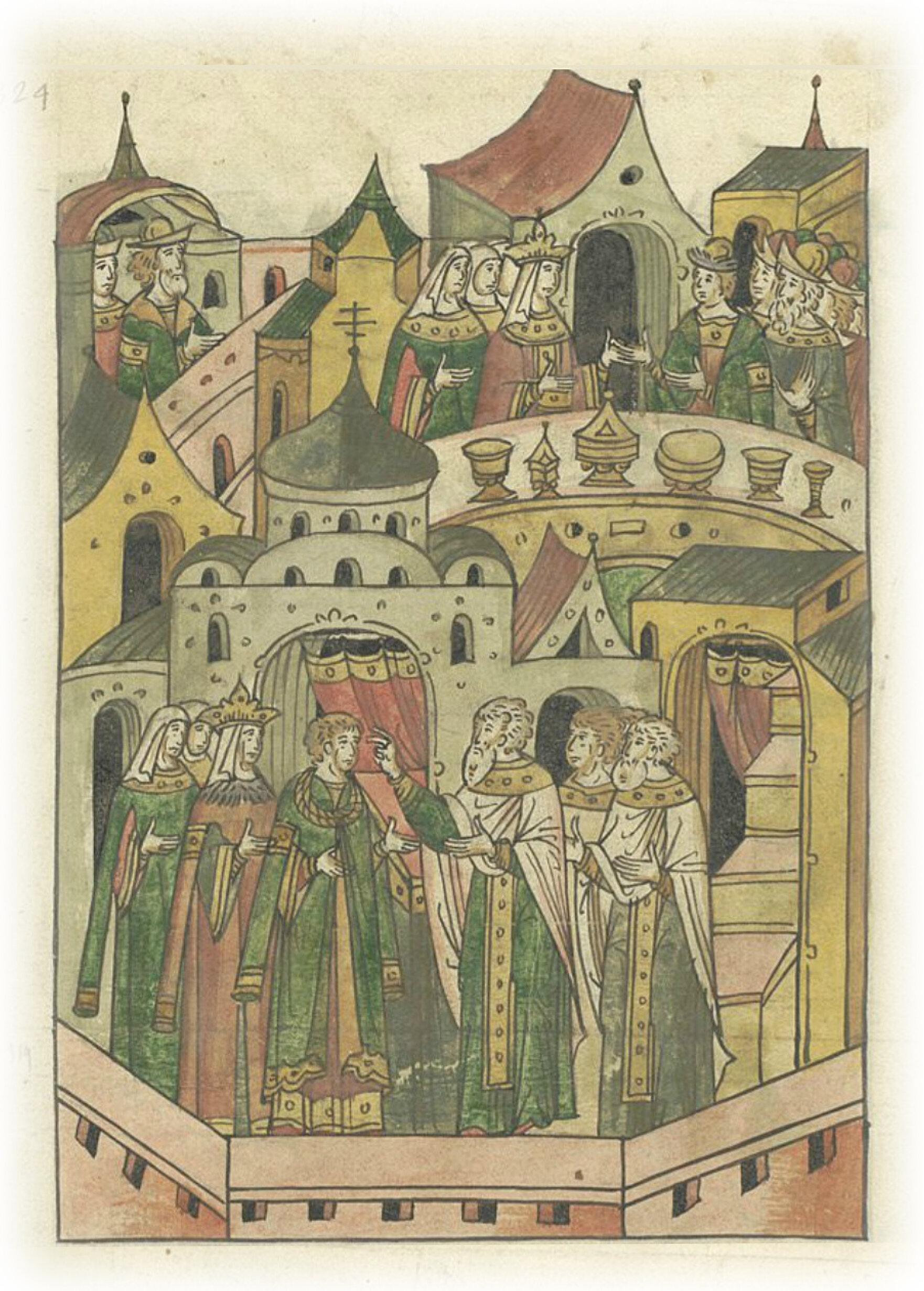 Женитьба князя Ивана Дмитриевича Переяславского у князя Дмитрия Борисовича Ростовского и венчание в церкви святого Спаса в Переславле.