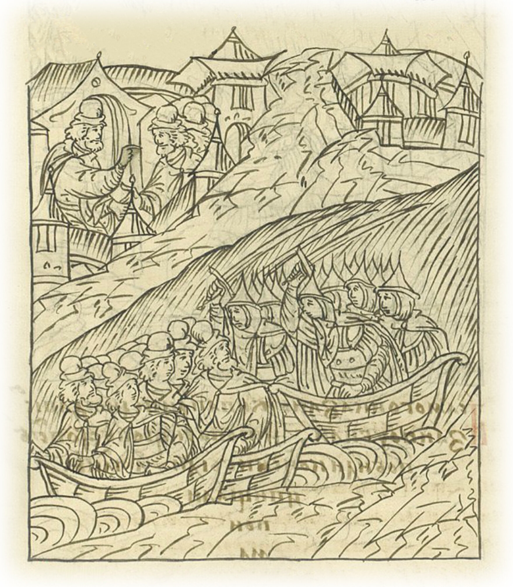 Ругодивские посадники Яким и Захар приезжают в Москву. Воеводы царя Ивана Васильевича Алексей Адашев и Иван Михайлов сообщают им, что государь пожалует их, если сдадут его воеводам помимо Ругодива Вышгород.