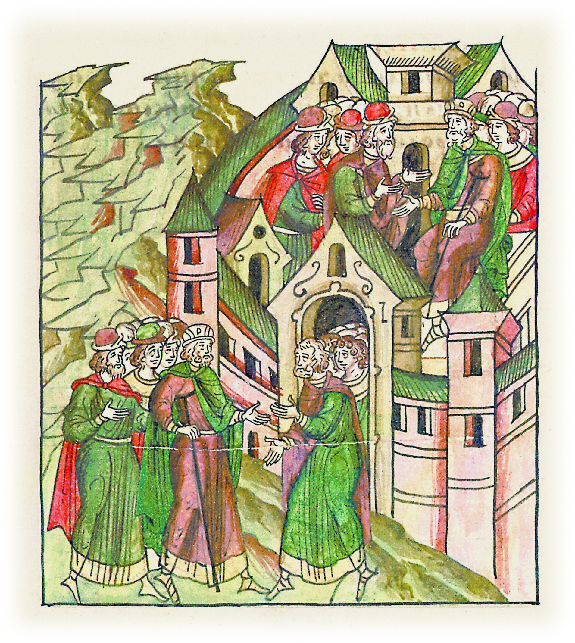 Ругодивские посадники Яким и Захар приезжают в Москву. Воеводы царя Ивана Васильевича Алексей Адашев и Иван Михайлов сообщают им, что государь пожалует их, если сдадут его воеводам помимо Ругодива Вышгород.