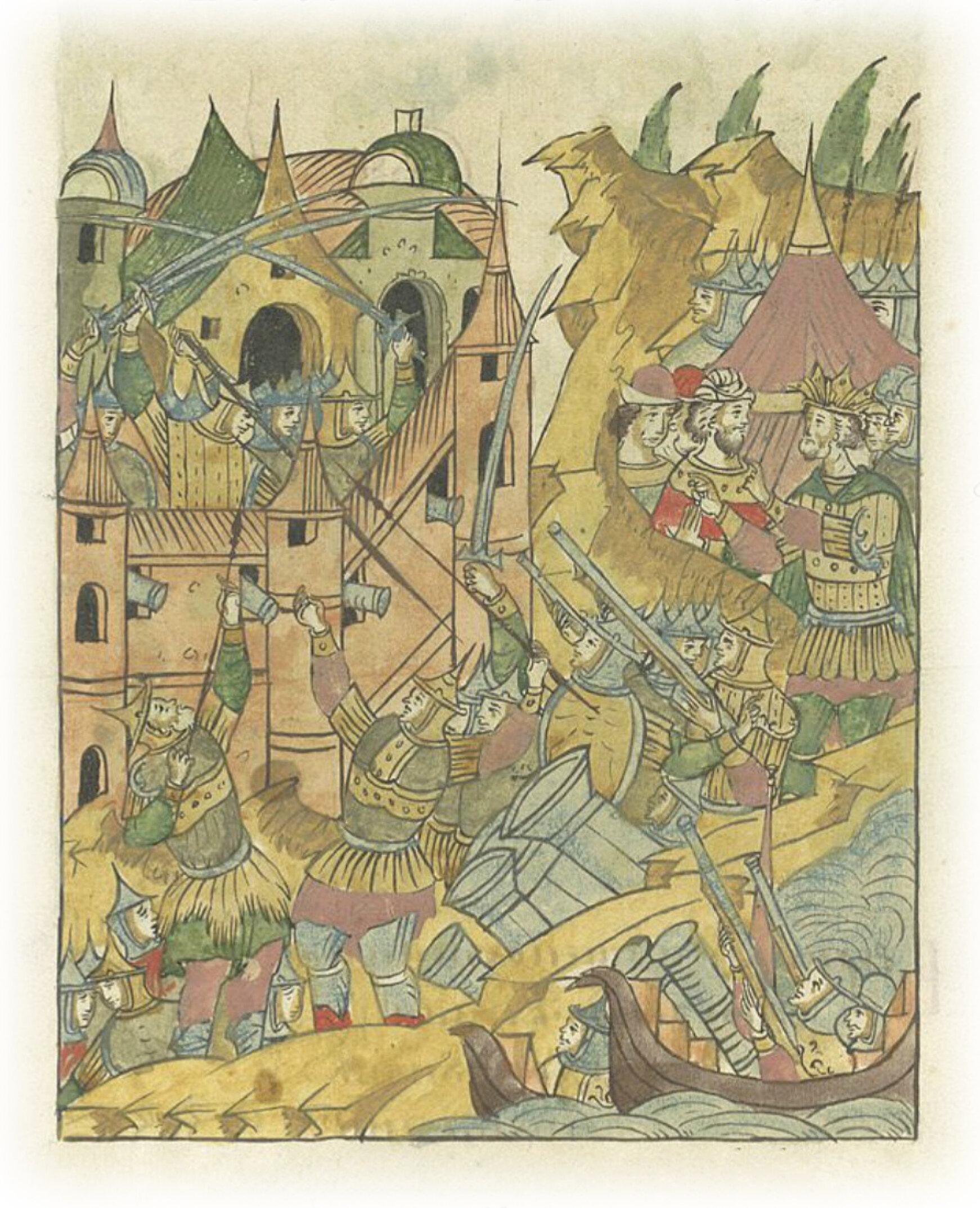 Языки говорят воеводам царя Ивана Васильевича, что магистр окопался большим рвом вокруг города Рындола, бьет из пушек и пищалей и приступает к Рындолу.