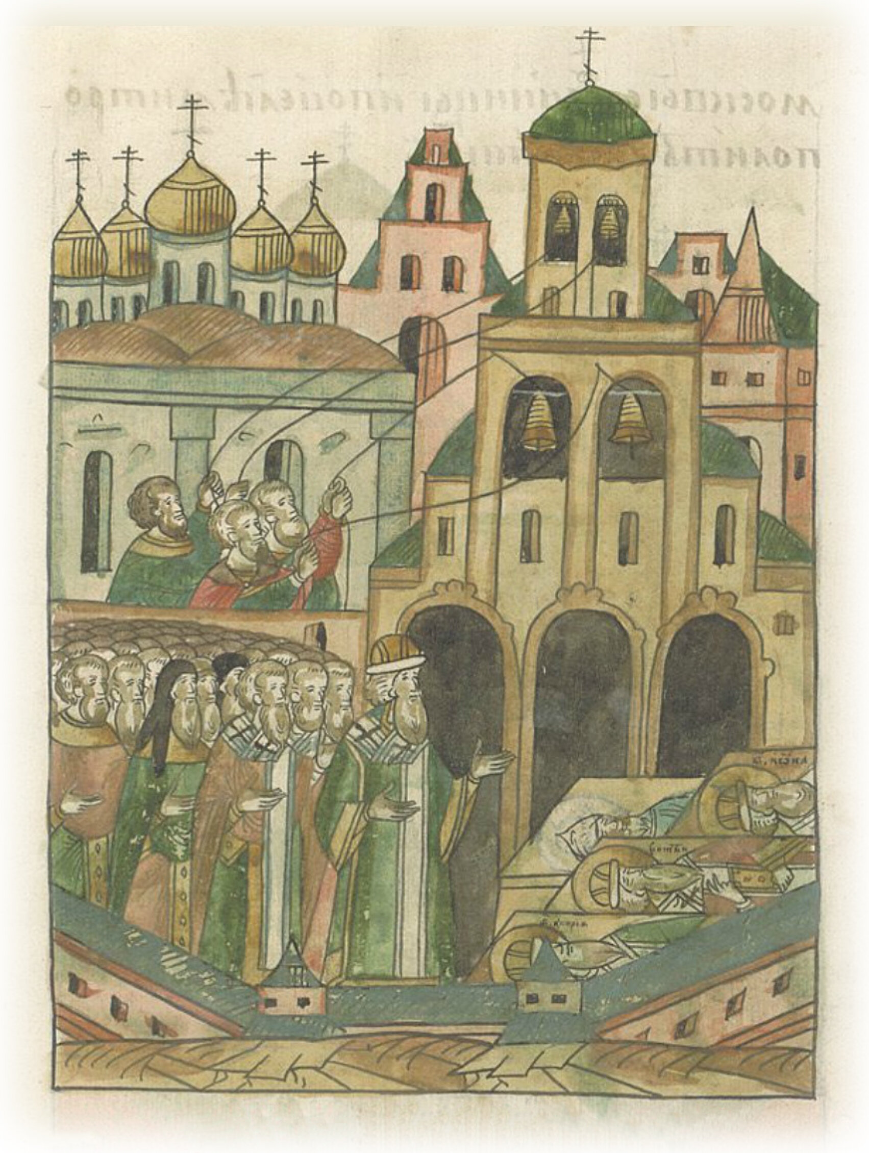 Перенесение в новую церковь мощей преосвященных митрополитов Киприана, Фотия и Ионы чудотворца, и мощей князя Юрия Даниловича.