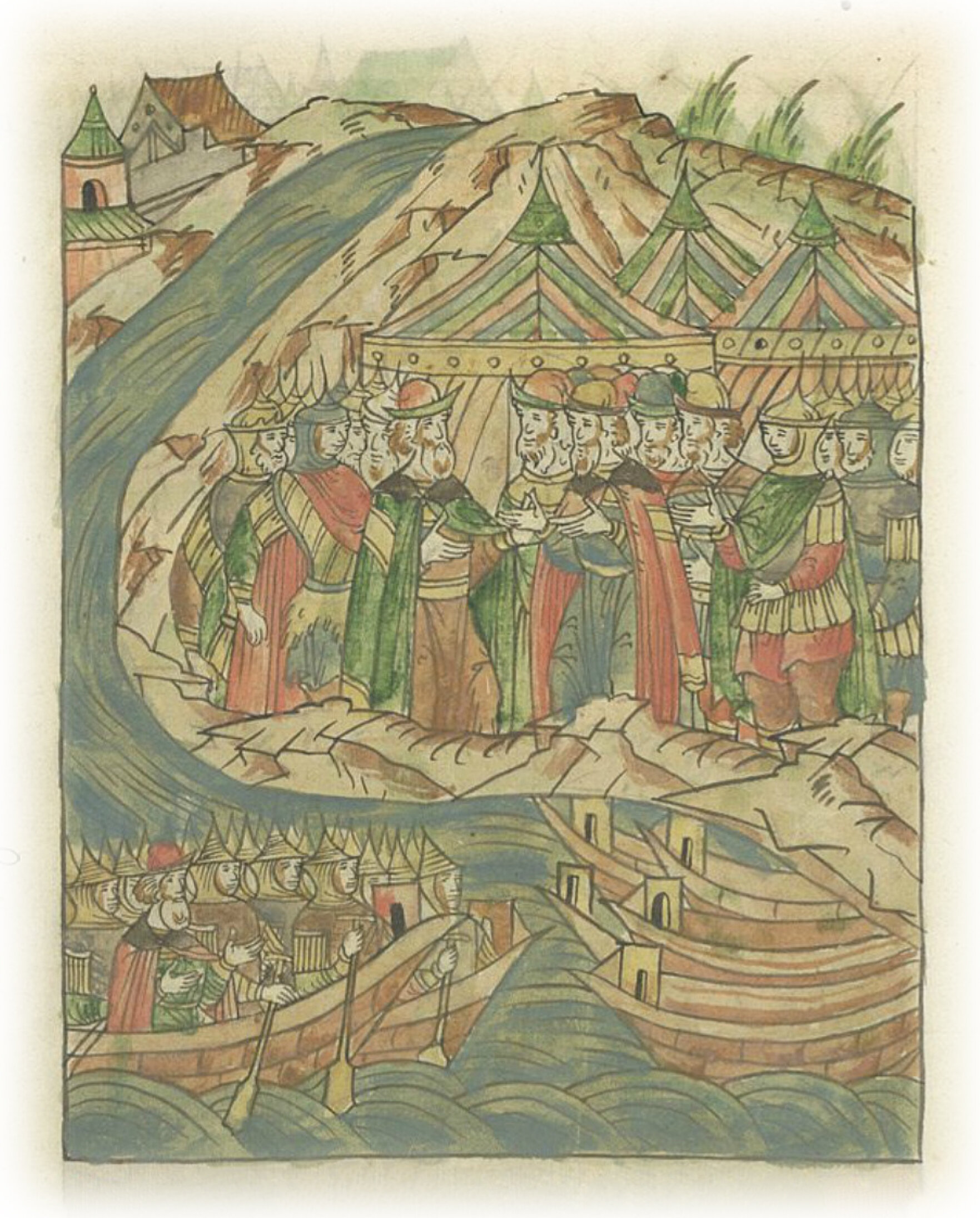 Воевода Константин Александрович Беззубцев приходит к рати великого князя Ивана Васильевича на Ирихов остров.