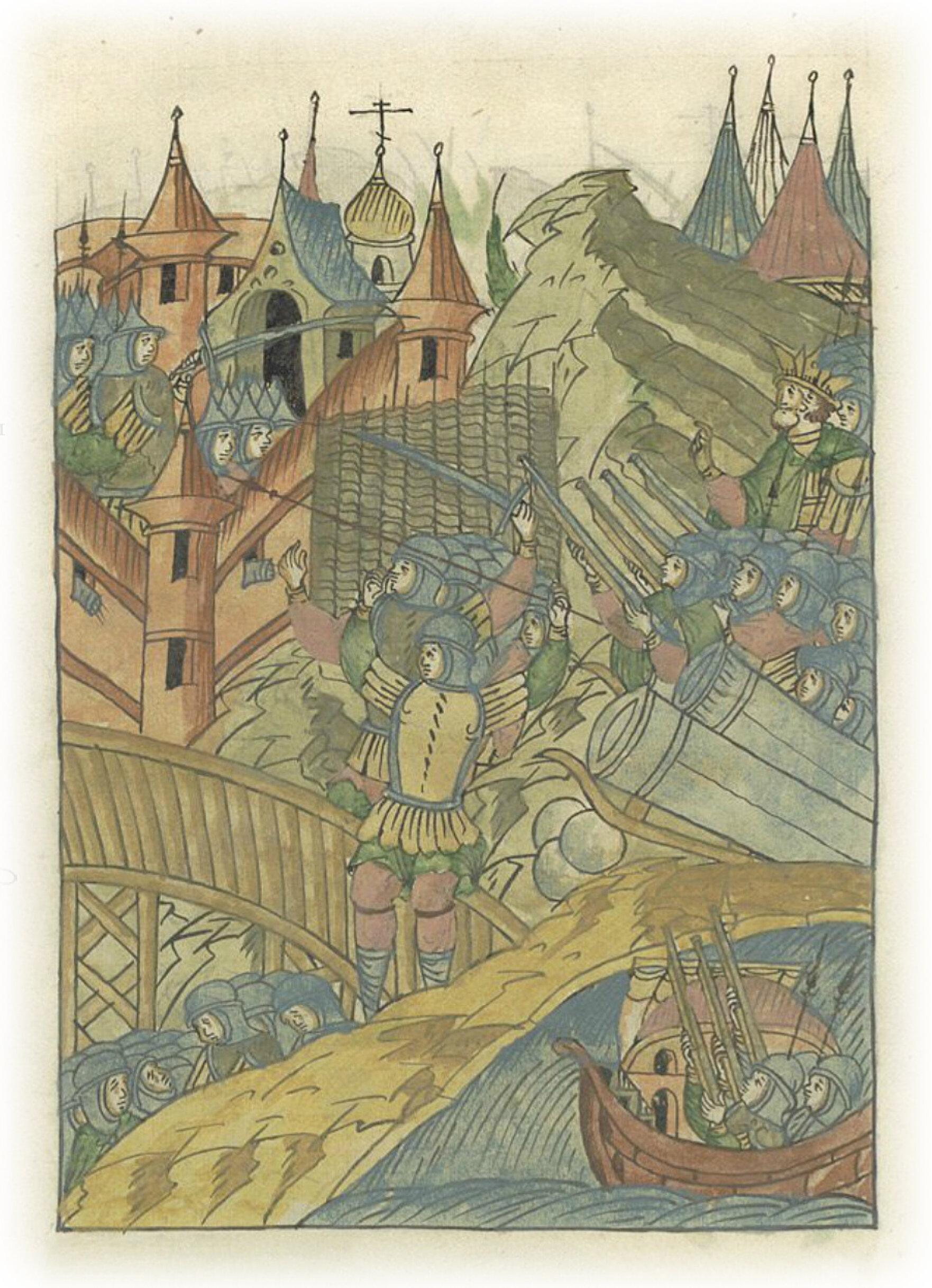 и мосты к городу на рвах устанавливать. И когда сбили со стен всех горожан, то
