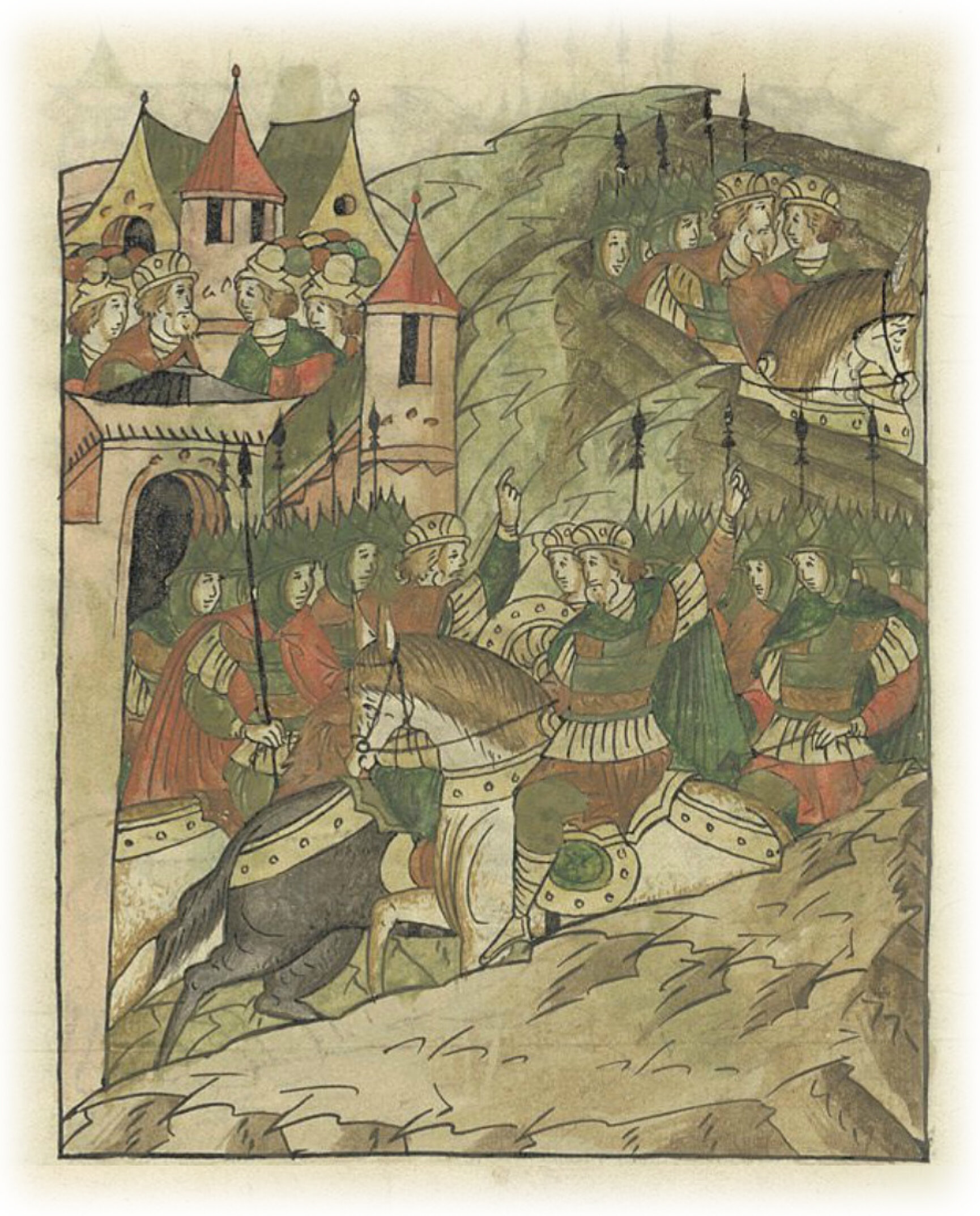 Языки говорят воеводам царя Ивана Васильевича, что магистр окопался большим рвом вокруг города Рындола, бьет из пушек и пищалей и приступает к Рындолу.