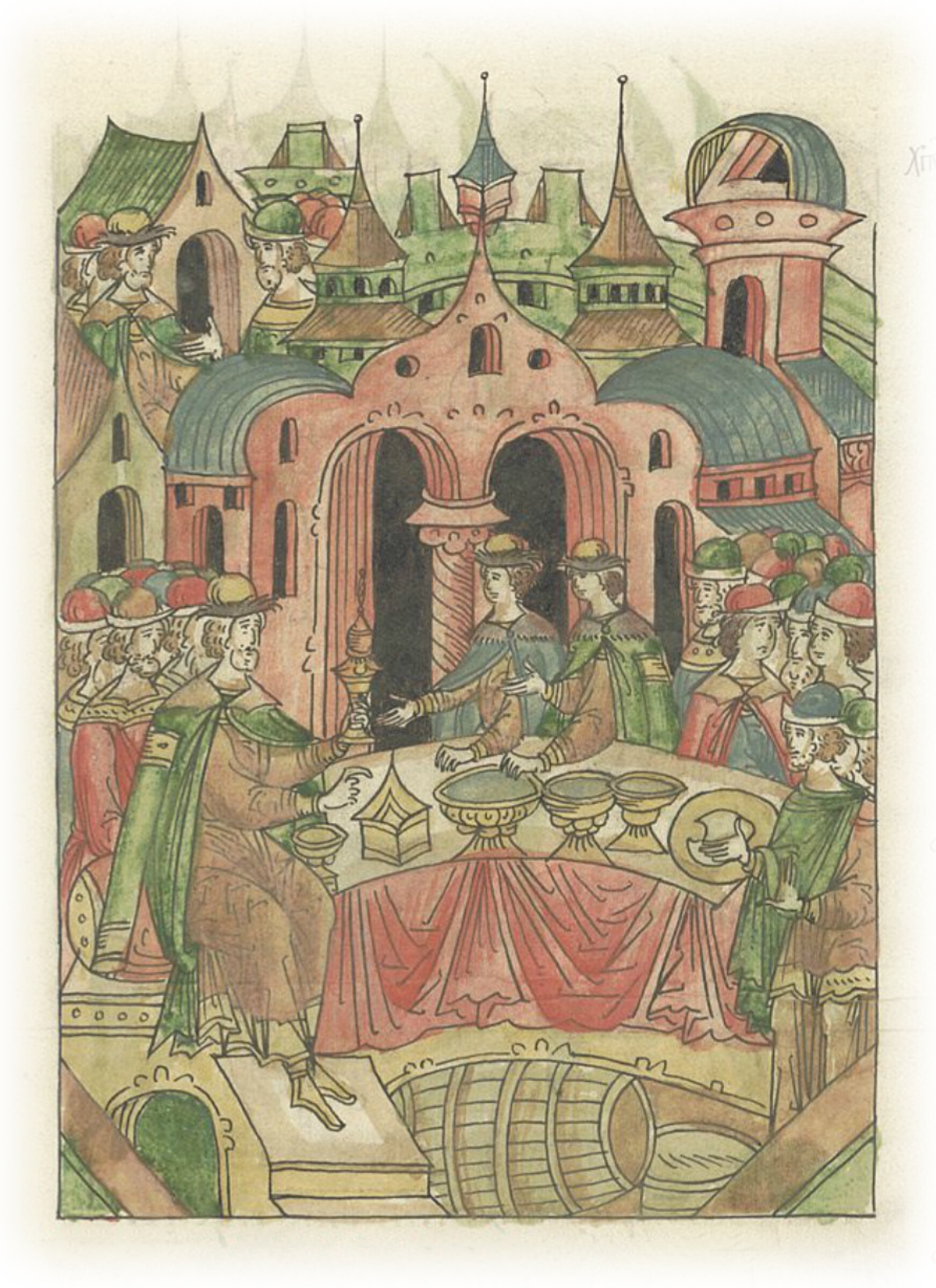 Князь Дмитрий Шемяка зовет детей великого князя Василия Васильевича и владыку Иону на обед и одаривает их, льстиво оказывая почести.