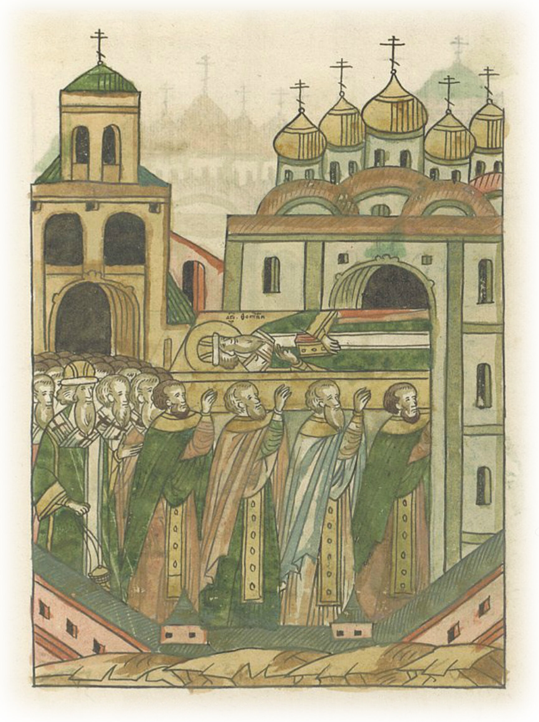 Перенесение в новую церковь мощей преосвященных митрополитов Киприана, Фотия и Ионы чудотворца, и мощей князя Юрия Даниловича.