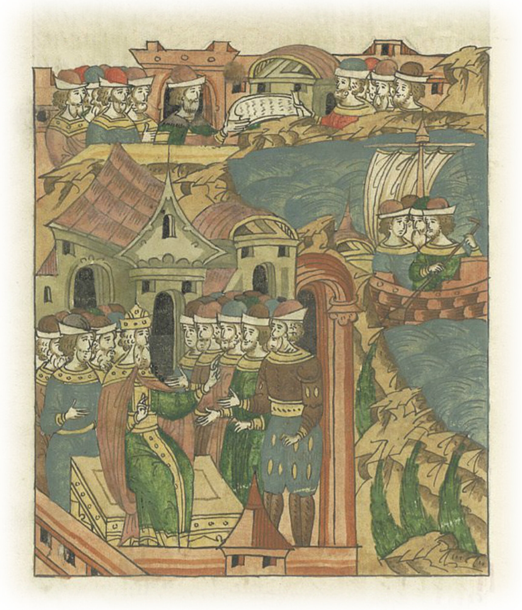 Ругодивские посадники Яким и Захар приезжают в Москву. Воеводы царя Ивана Васильевича Алексей Адашев и Иван Михайлов сообщают им, что государь пожалует их, если сдадут его воеводам помимо Ругодива Вышгород.