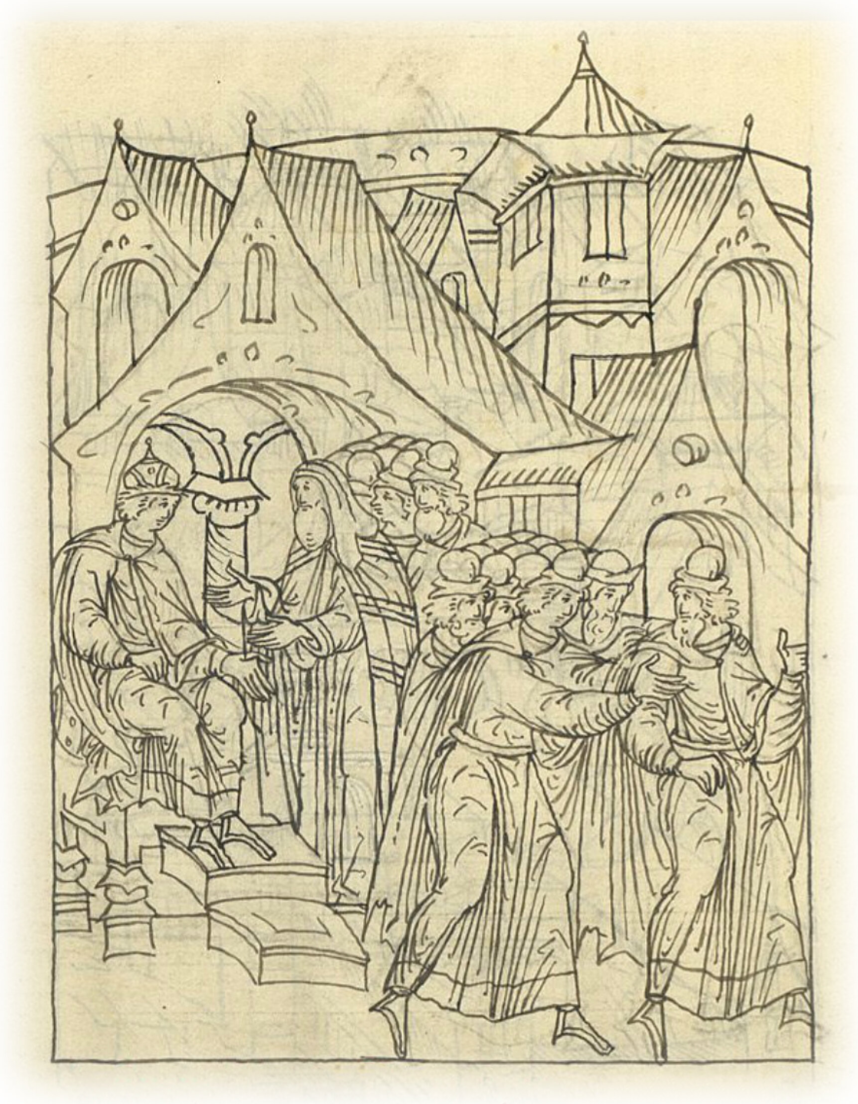 Ругодивские посадники Яким и Захар приезжают в Москву. Воеводы царя Ивана Васильевича Алексей Адашев и Иван Михайлов сообщают им, что государь пожалует их, если сдадут его воеводам помимо Ругодива Вышгород.