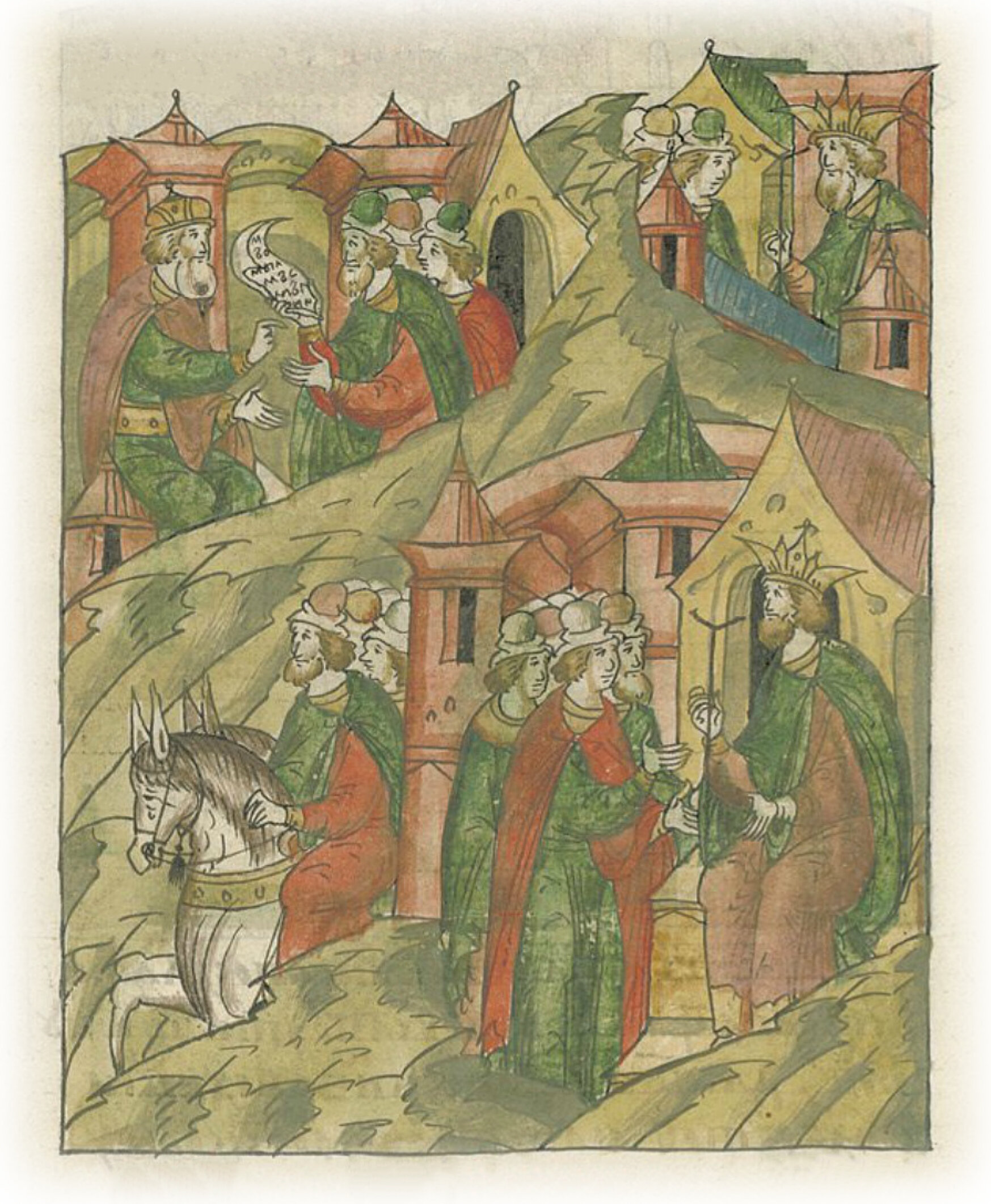 Посол Сигизмунд Гердберстен приходит к великому князю Василию Ивановичу от Римского цесаря Максимилиана с просьбой помириться с Польским королем Сигизмундом.