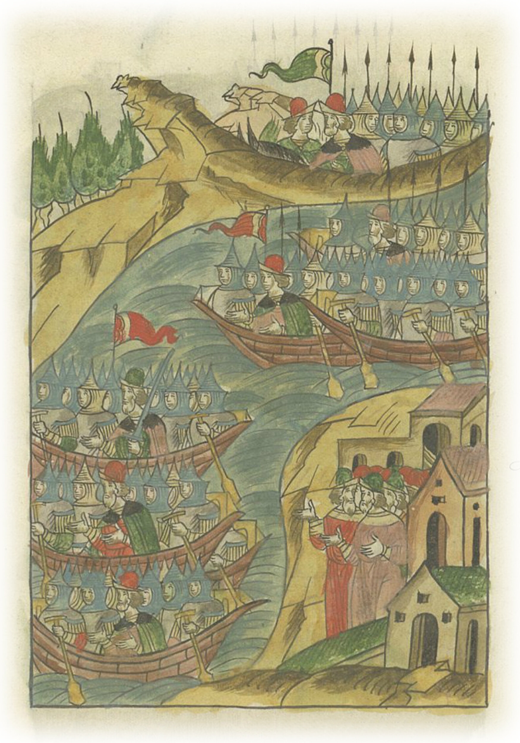 Судовые татары возвращаются за отступившими к своему берегу воинами великого князя Ивана Васильевича.