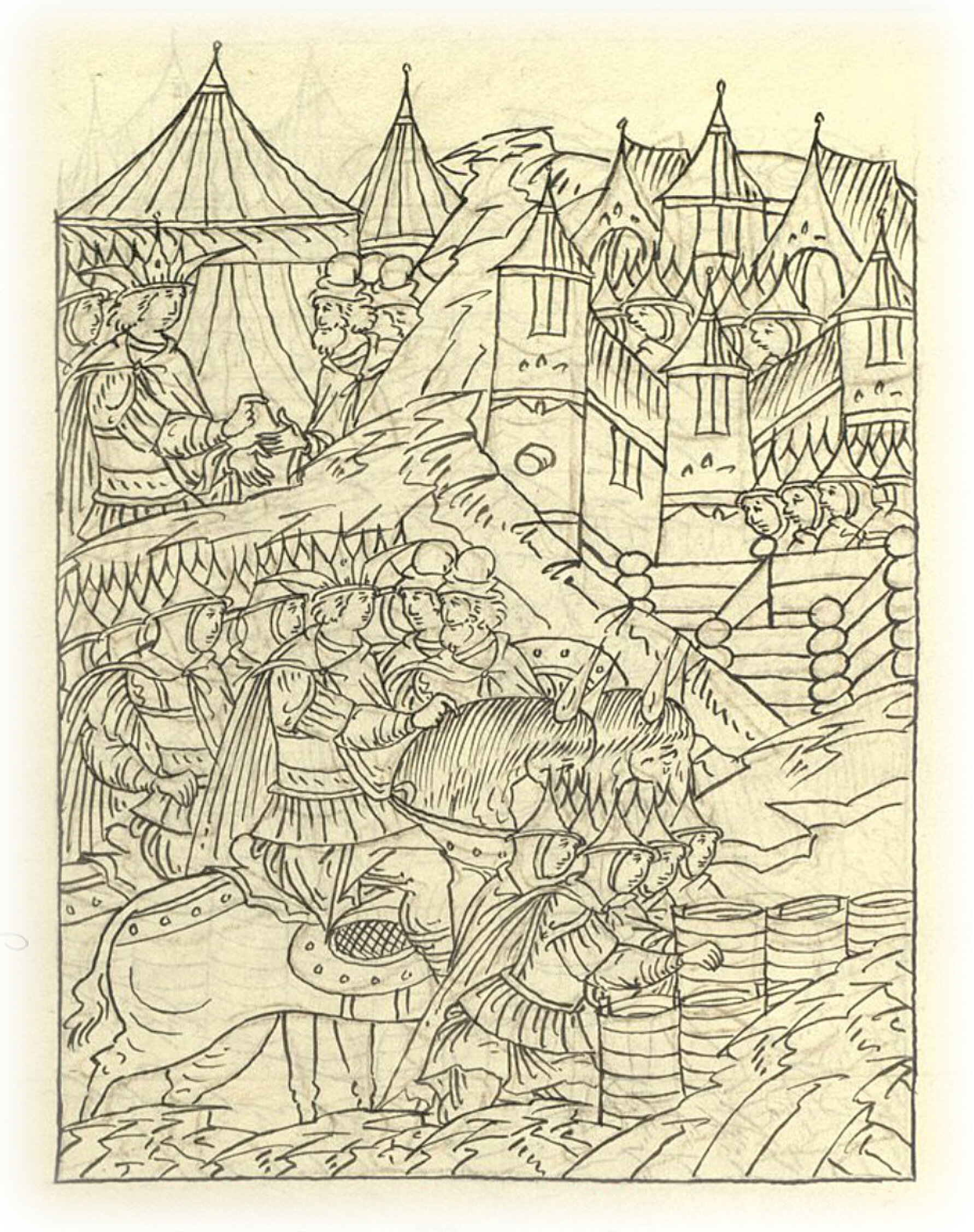 Языки говорят воеводам царя Ивана Васильевича, что магистр окопался большим рвом вокруг города Рындола, бьет из пушек и пищалей и приступает к Рындолу.