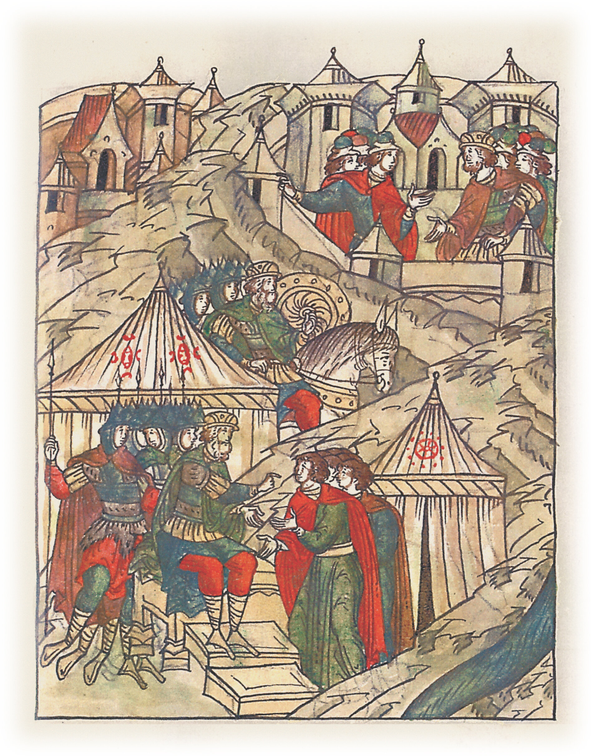 И придя, встал близ Киева, и послал в Киев к великому князю Изяславу Давыдовичу – пусть идет из Киева: «Твое великое княжение – Чернигов, мне же надлежит сидеть на великом княжении в Киеве».