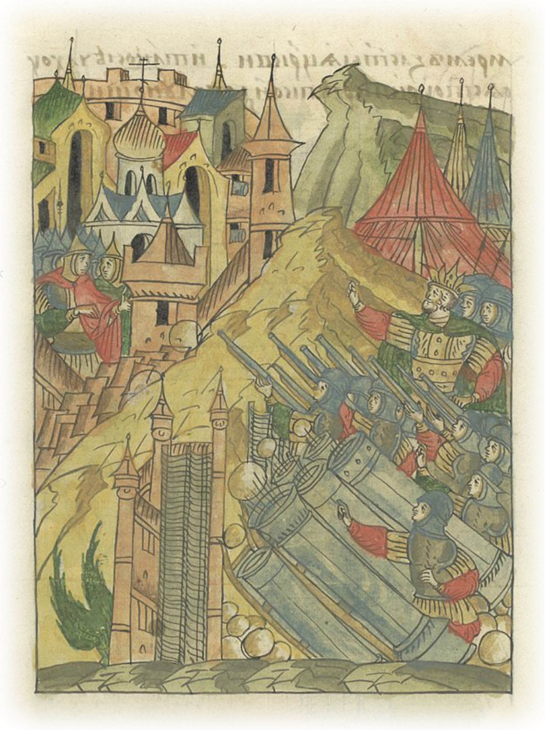 Языки говорят воеводам царя Ивана Васильевича, что магистр окопался большим рвом вокруг города Рындола, бьет из пушек и пищалей и приступает к Рындолу.