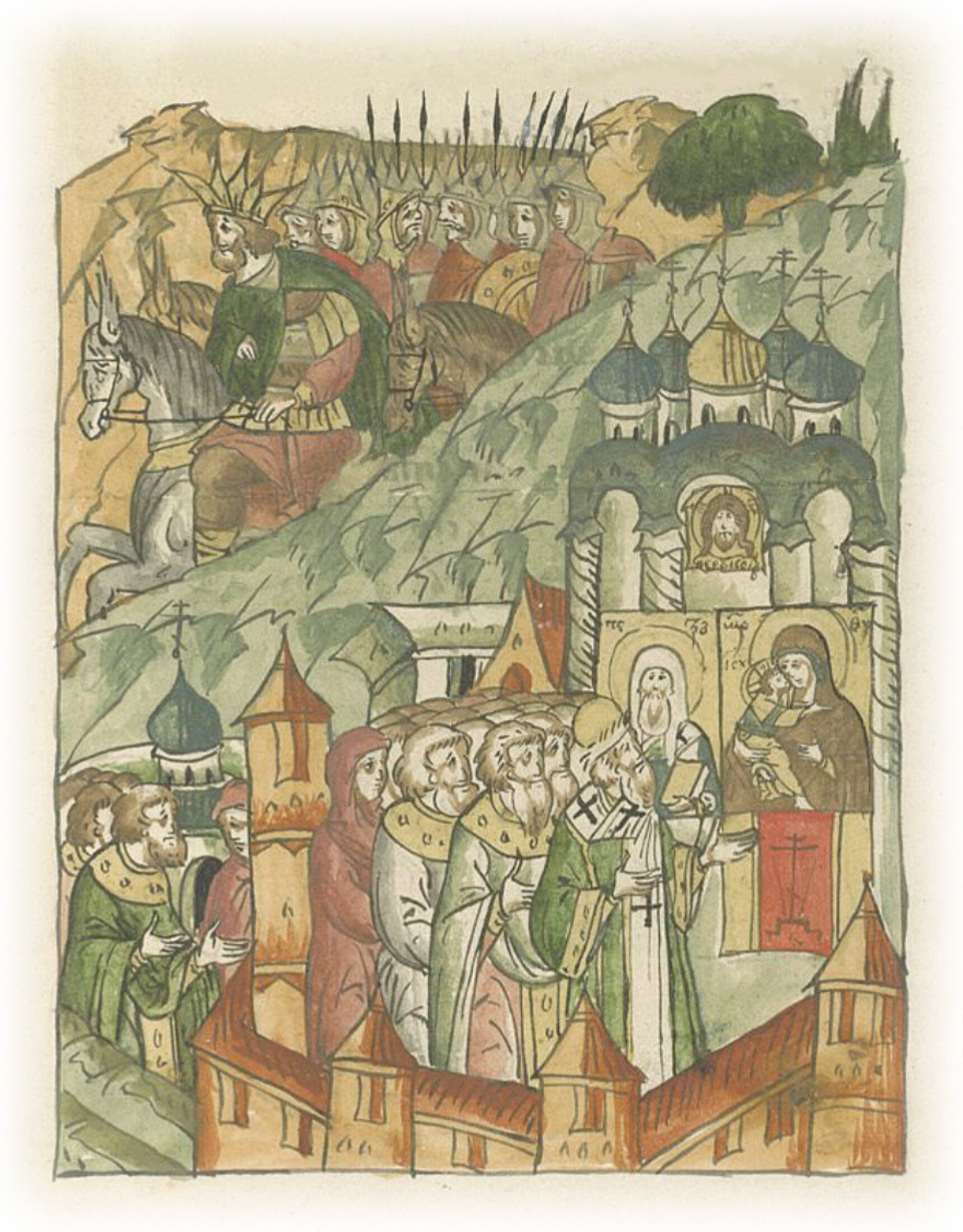Ибо только помыслили люди обратиться на покаяние, и всю надежду на Бога возложили и на пречистую Богородицу, и на молитву призвали великих русских чудотворцев и всех святых, и премилостивый Бог удостоил некоторых видеть таковые предивные видения. И в тот же день пришли вестники, сказавшие, что нечестивые татары с безбожным их царем, страхом великим объятые, побежали, никем не гонимые, ибо Божья сила прогнала их непостыдным ходатайством пречистой Богородицы и молитвами всех святых.