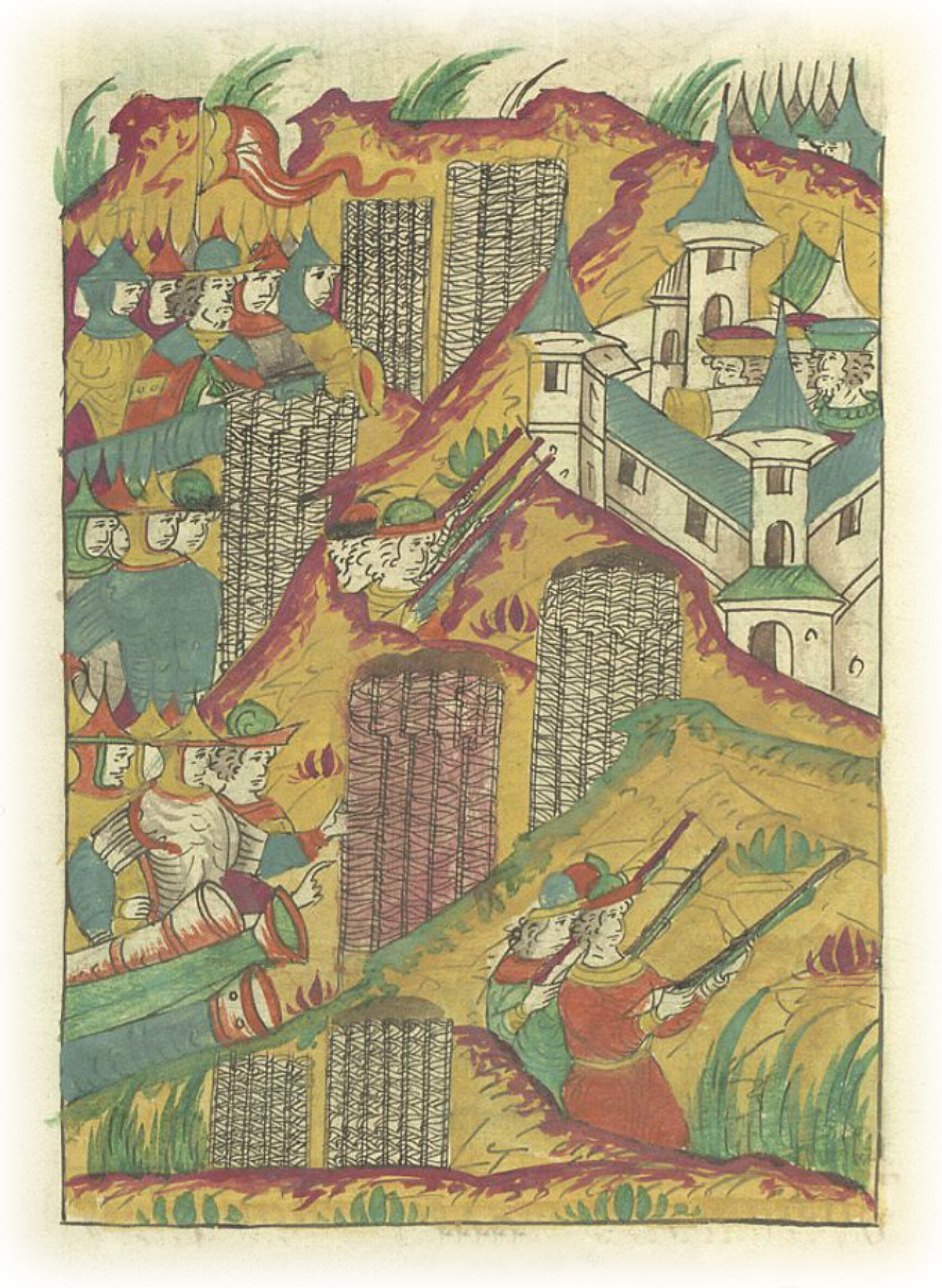 И расставили вокруг города туры, и орудия по всем турам расставили, а стрельцов с пищалями перед турами в окопах поставили,
