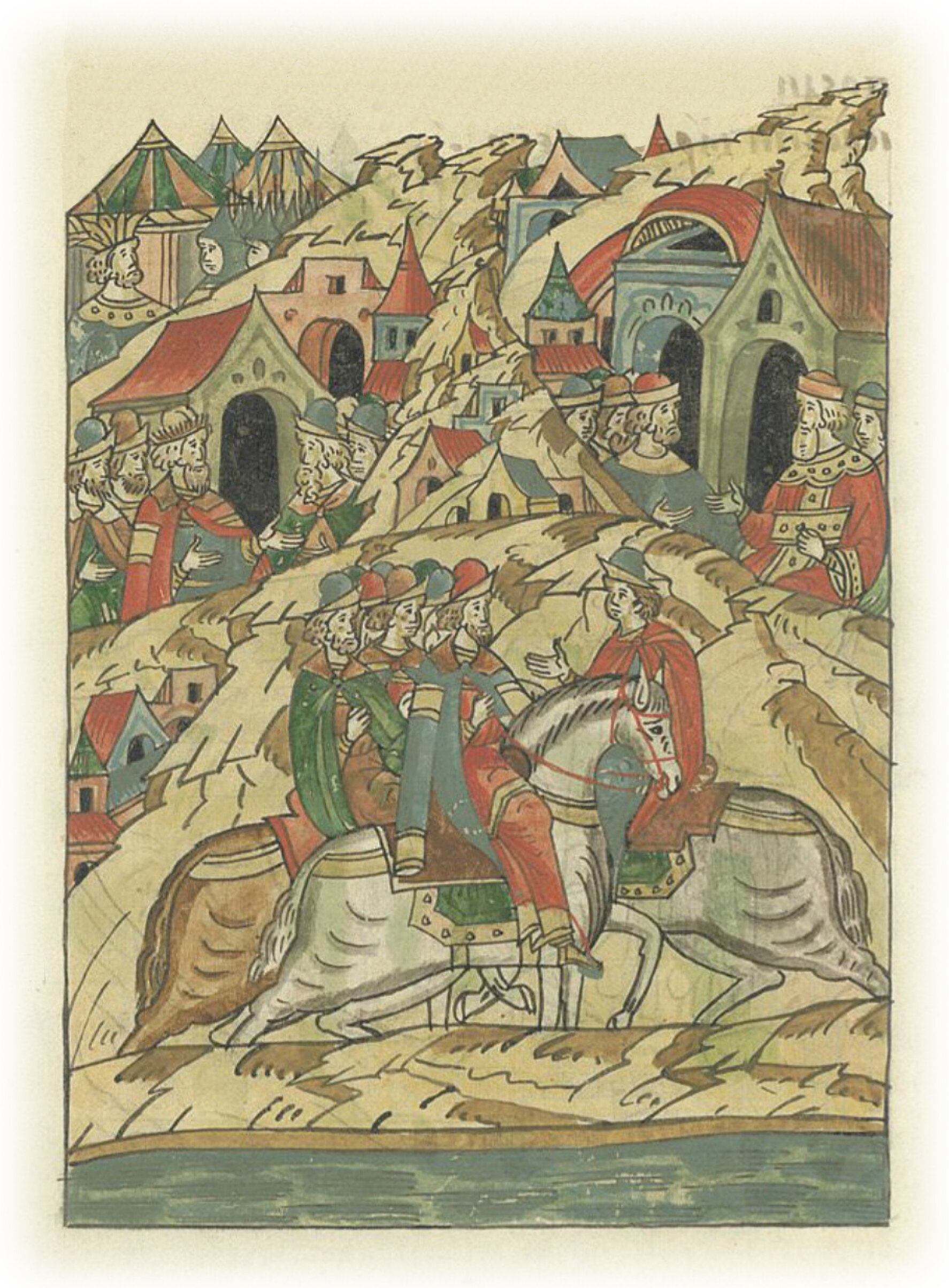 Дошел же посол до земли Рязанской и услышал, что Олег, князь Рязанский, и Ягайло Литовский присоединились к царю Мамаю,