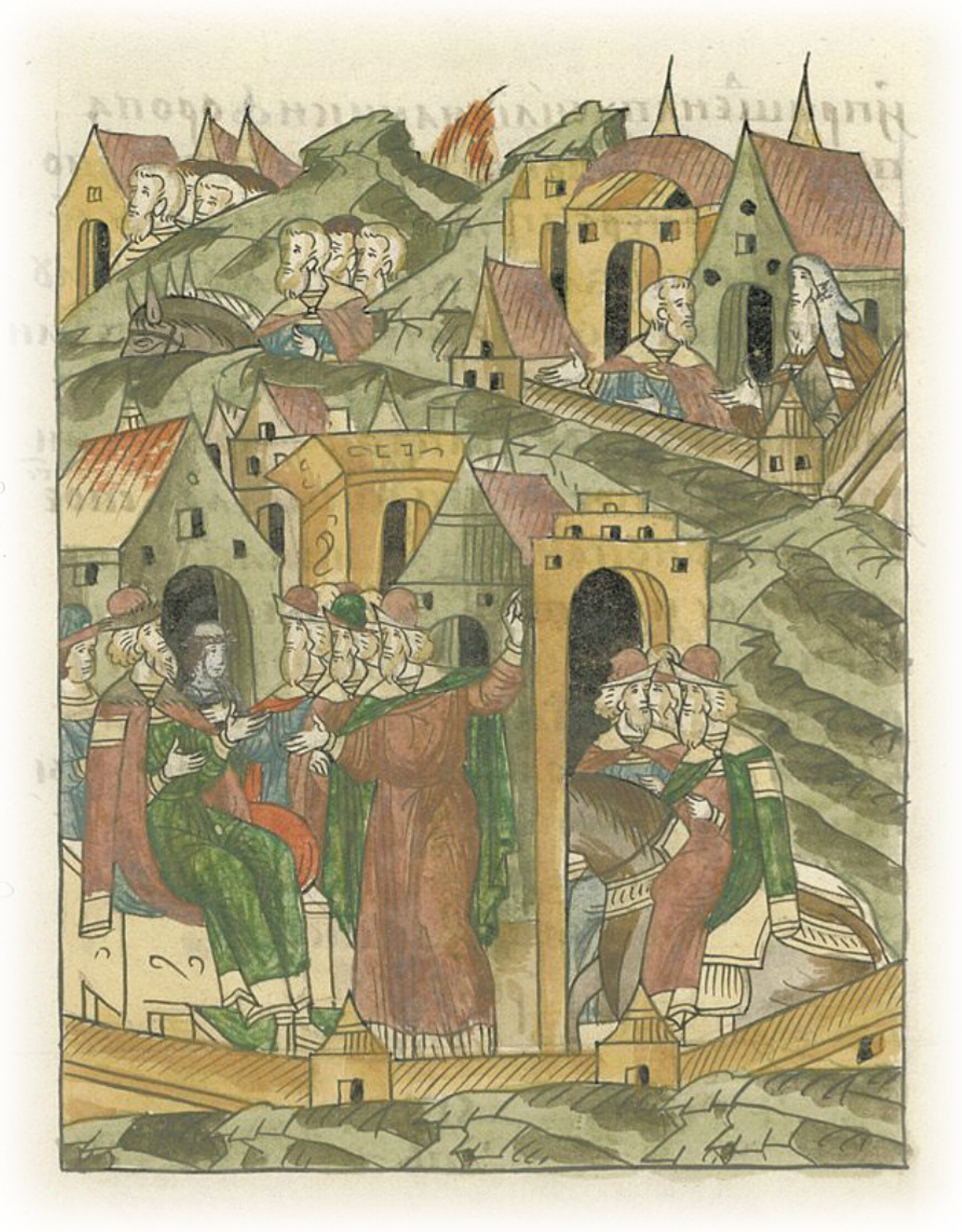 Князь же великий, услышав о том от своих послов, да и от тамошних посадников, которые были приятны ему, что разбежались все, и что таковое злое волнение возникло в них после первого их преступления, как и перед Шелонским их отступлением.