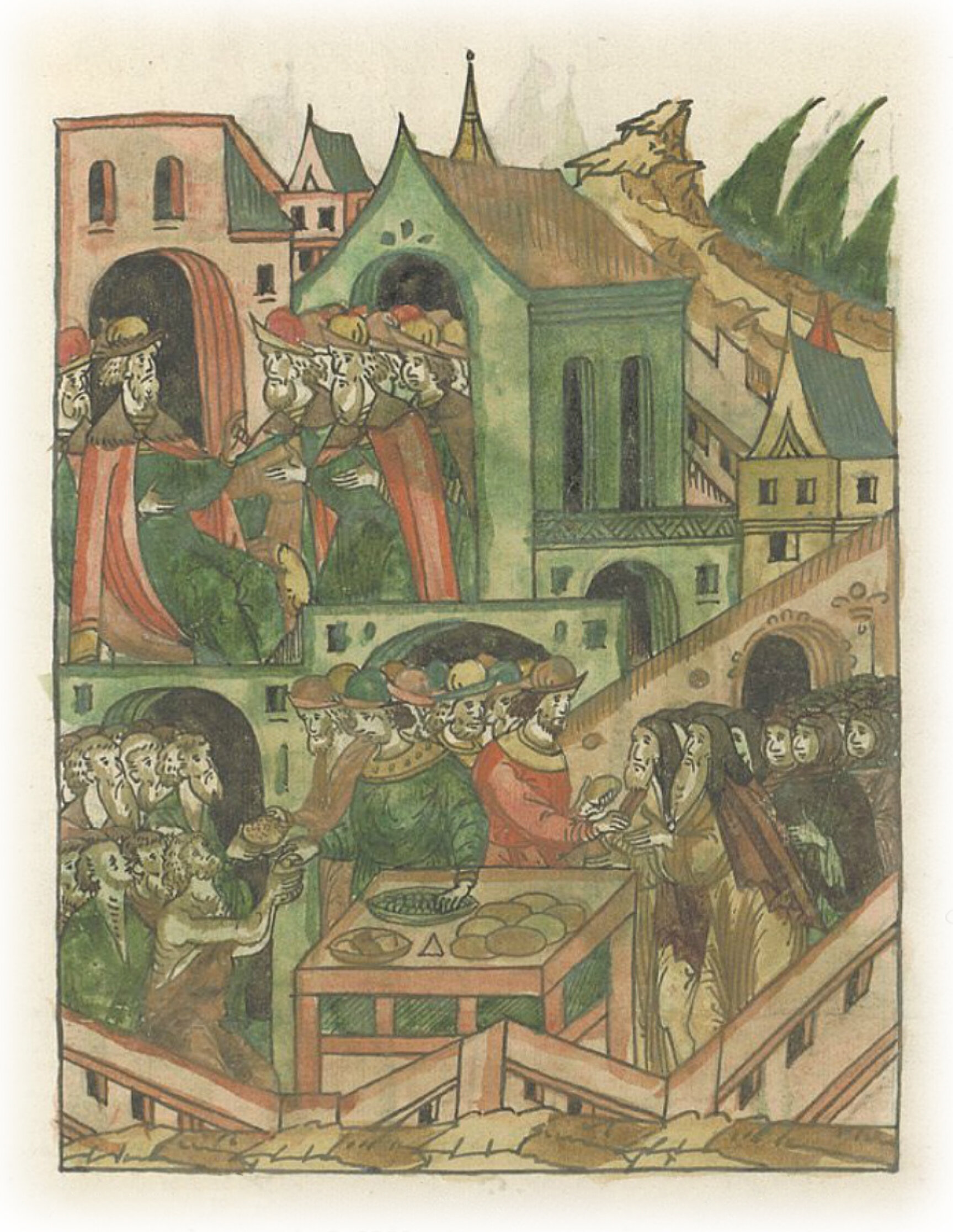 И на всех тех давали от великого князя милостыню, и корм чернецам и черницам, и всем нищим.