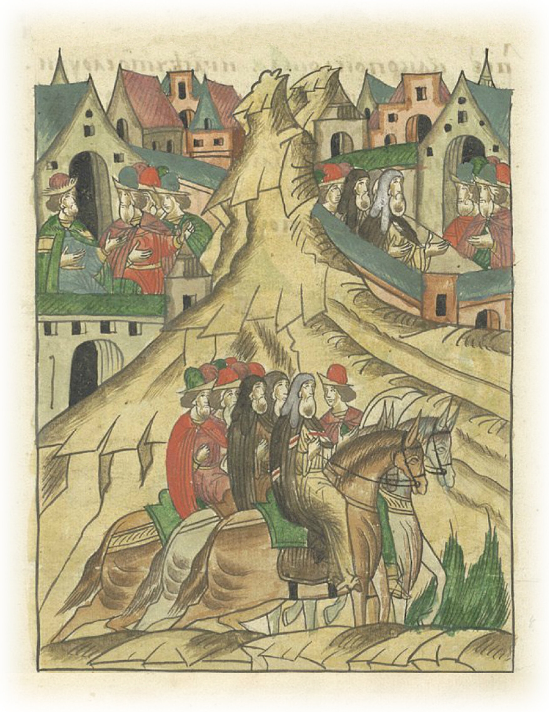 Князь же великий Дмитрий Иванович вознегодовал на митрополита за то, что без его совета пошел, была еще и распря некая промеж них; и так началось путешествие. И повелел митрополит Пимен Михаилу, владыке Смоленскому, да Сергию, архимандриту Спасскому, и всем: если кто захочет, пусть запишет об этом путешествии все – как пошли и где что случилось, или кто возвратился или не возвратился вспять; мы же сие все записывали. И так пошли от Москвы, как впереди уже было написано, и пришли на Коломну в субботу Великую.