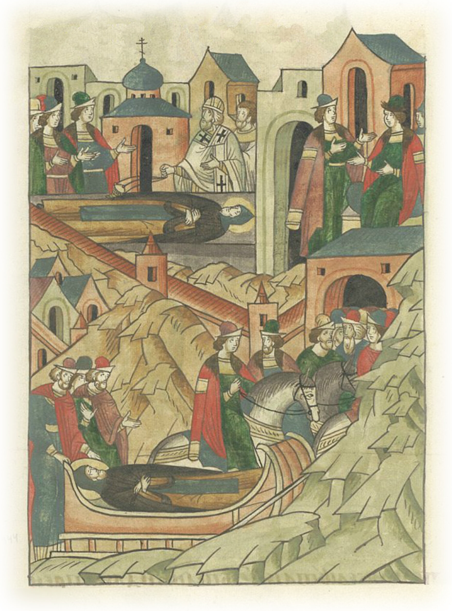 Похороны князя Дмитрия Александровича в Переславле в церкви святого Спаса.