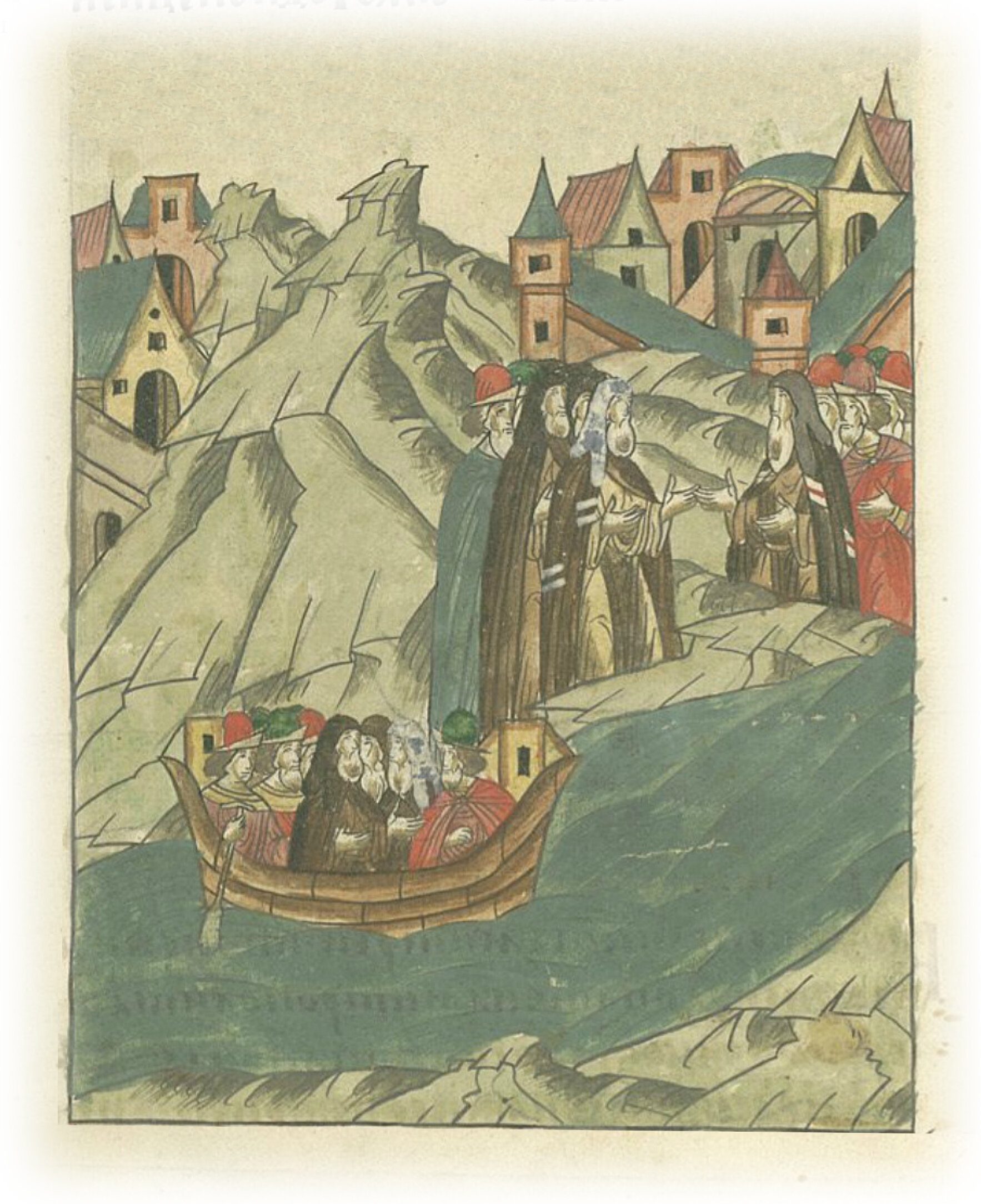 А в святую неделю Пасхи пошли к Рязани по реке Оке и приспели к Перевитку; и тут встретил нас Еремий, епископ Рязанский, Гречин.