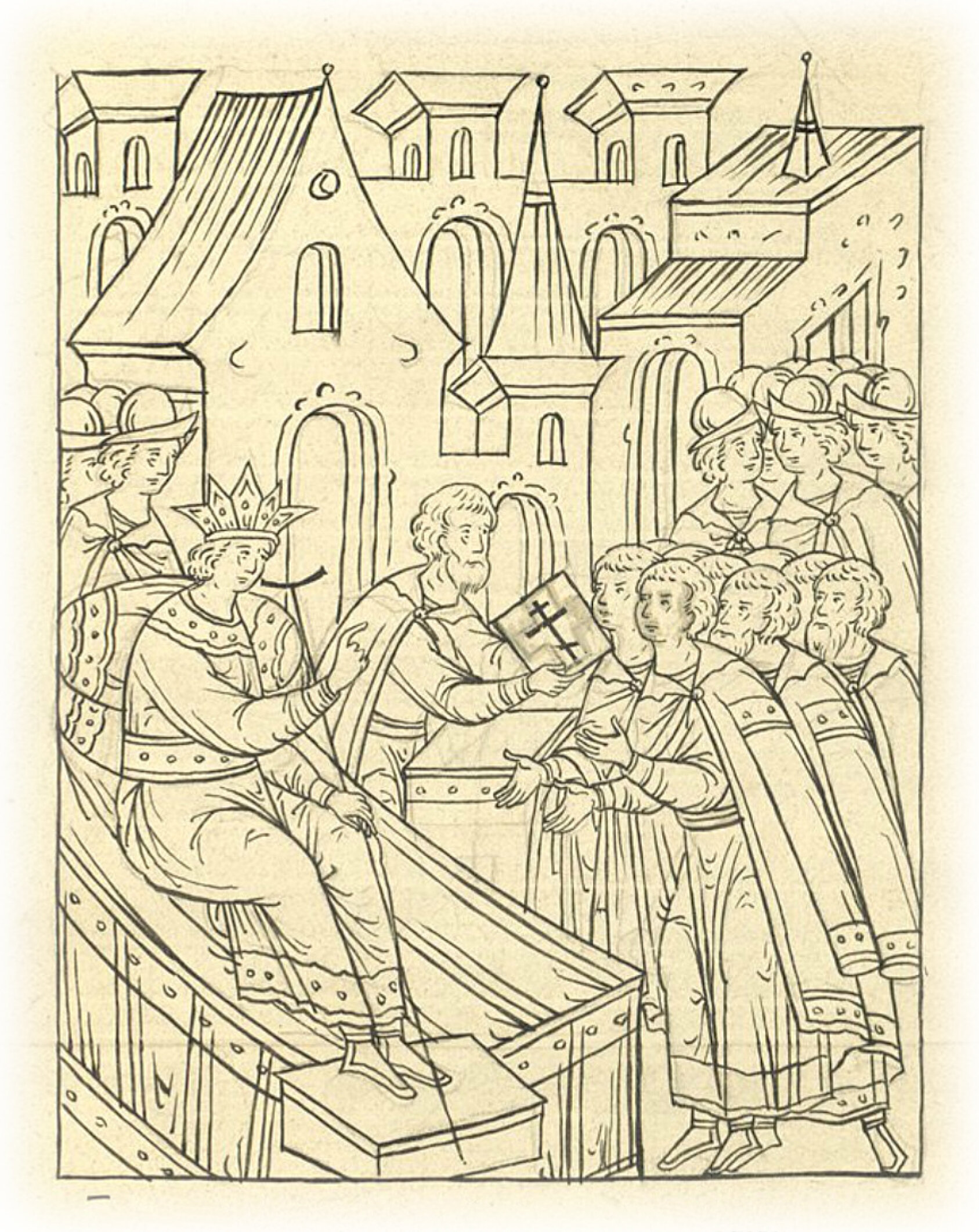 Ругодивские посадники Яким и Захар приезжают в Москву. Воеводы царя Ивана Васильевича Алексей Адашев и Иван Михайлов сообщают им, что государь пожалует их, если сдадут его воеводам помимо Ругодива Вышгород.