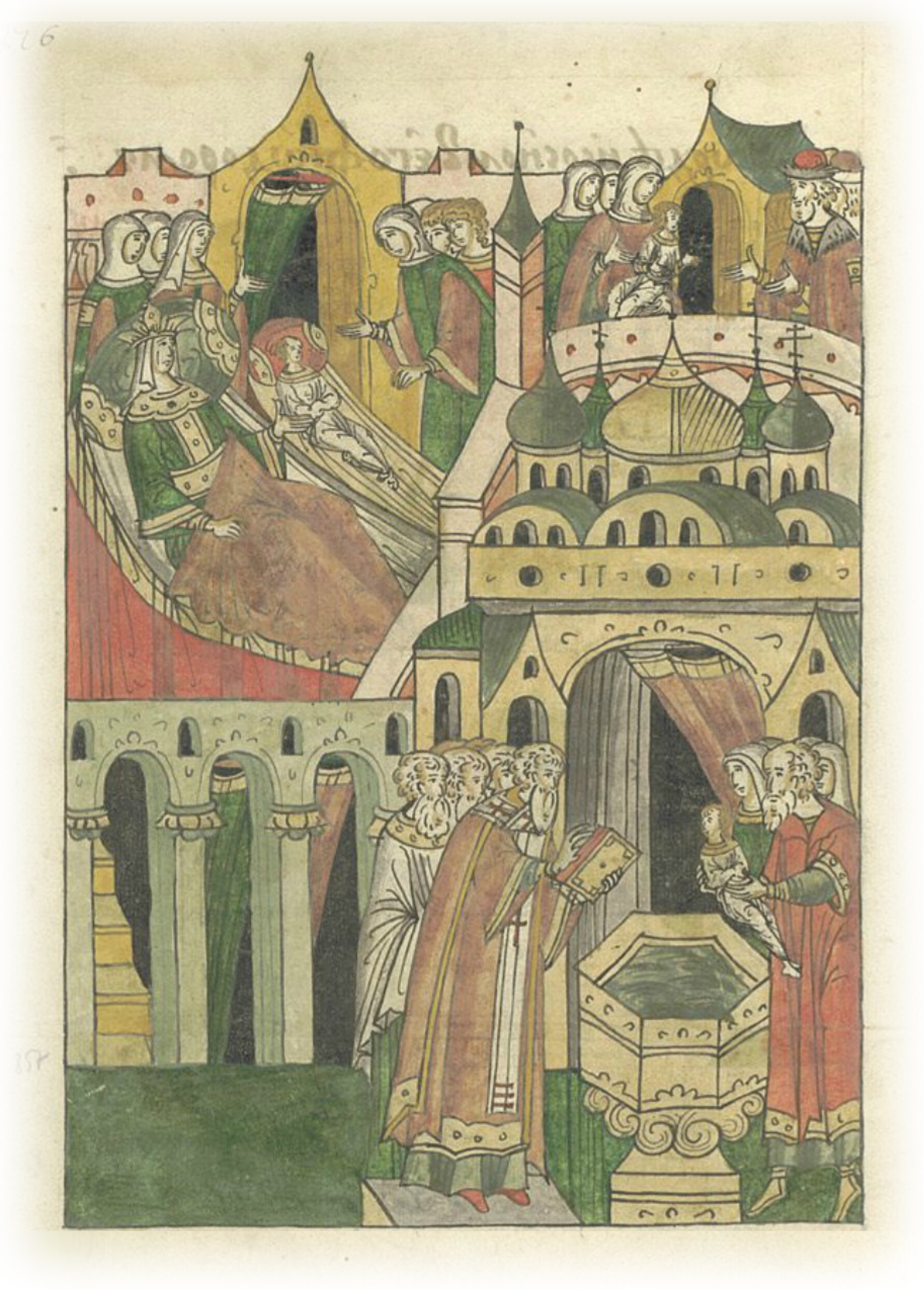 Рождение у великого князя Семена Ивановича сына Михаила, которого крестит митрополит Феогност.